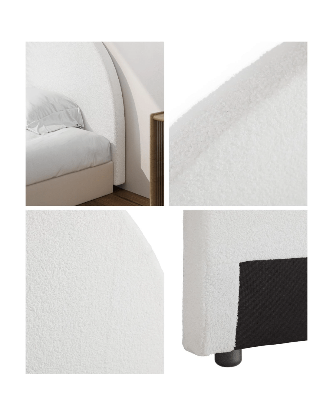 Crafted with meticulous attention to detail, our Boucle bed head is a true work of art. It features a sumptuously soft Boucle fabric upholstery that not only adds a touch of texture but also invites you to run your fingers over its plush surface. The Boucle fabric creates a tactile and inviting feel, making your bed the focal point of your room.
