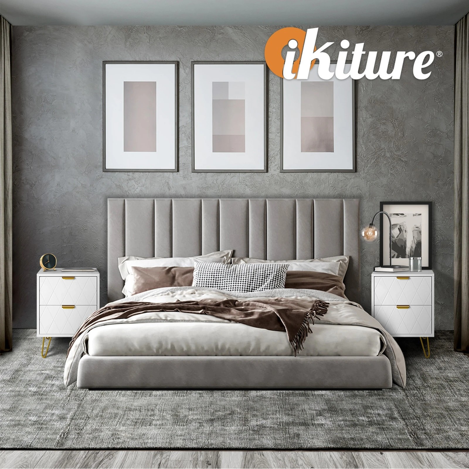 Oikiture Bedside Table 2 Drawers Gold Metal Nightstand