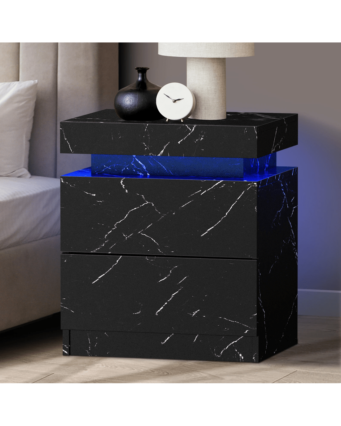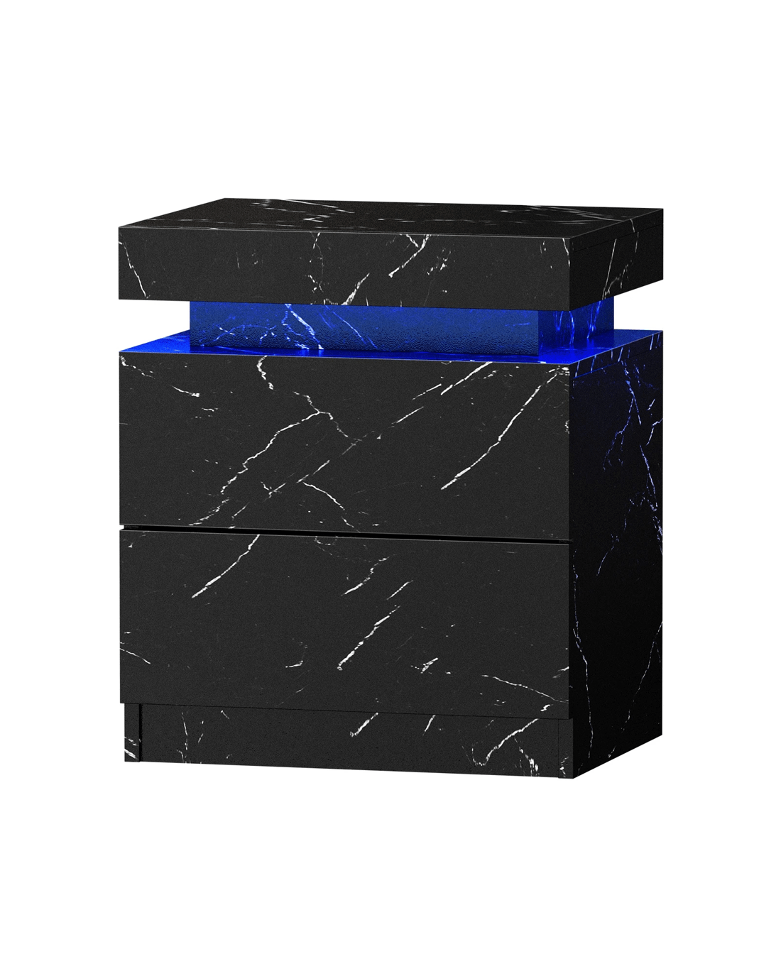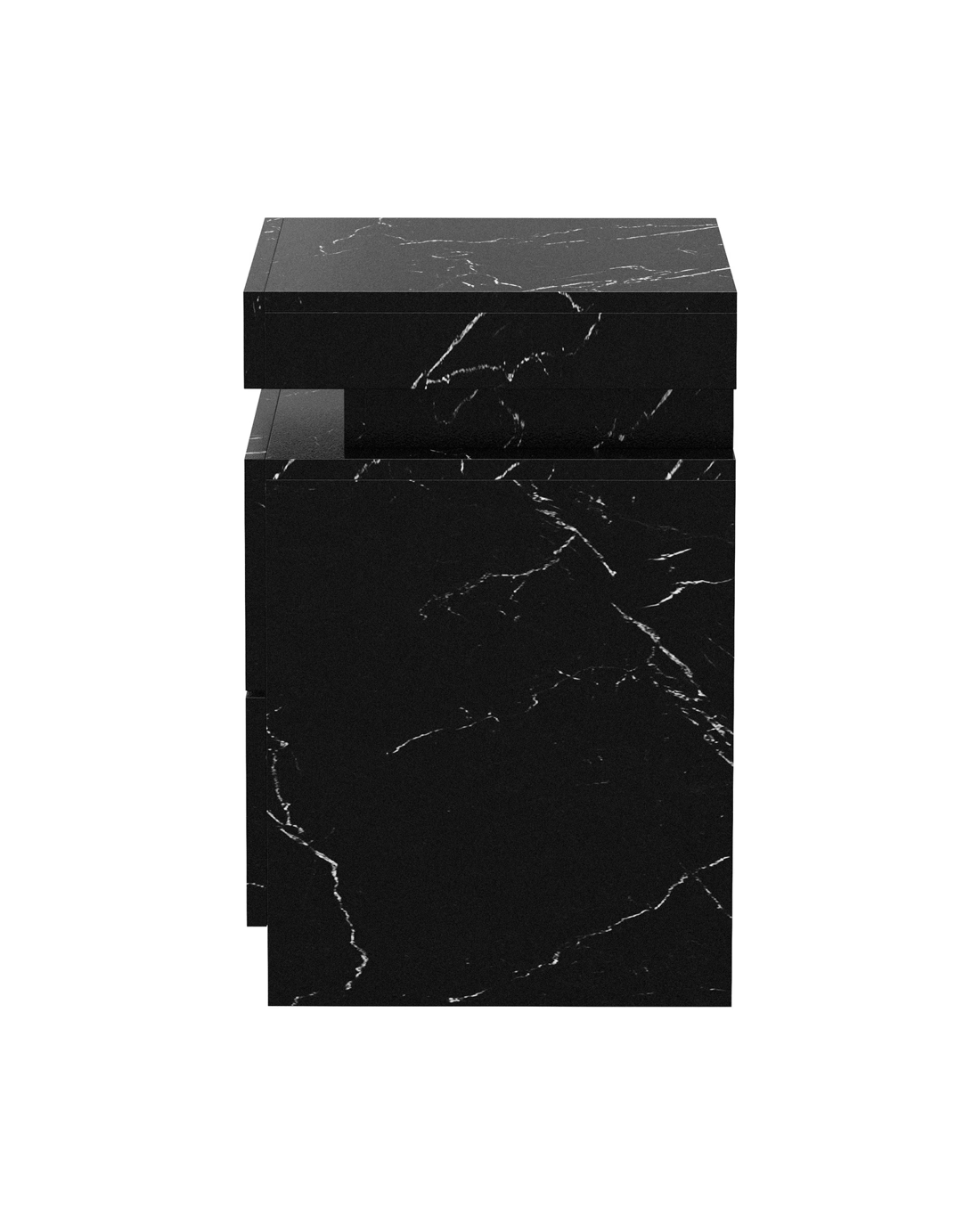 Sold by Kamprad's Oikos 1943Oikiture Bedside Table 2 Drawers Led Side Nightstand Marble Effect - Black