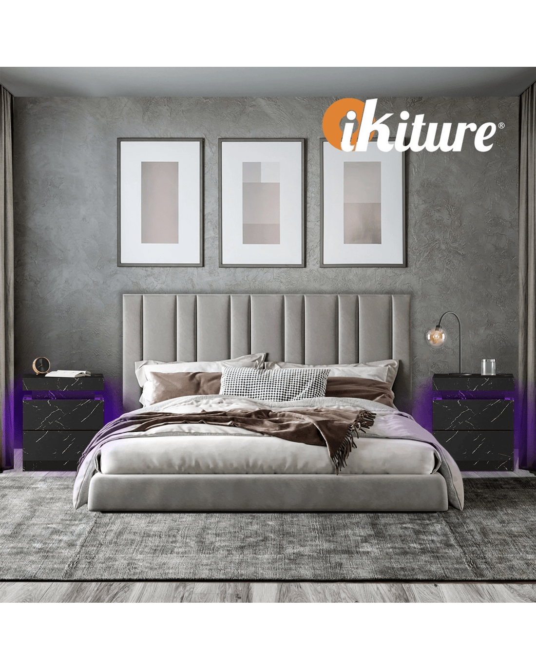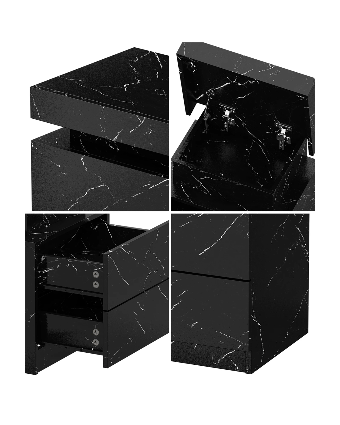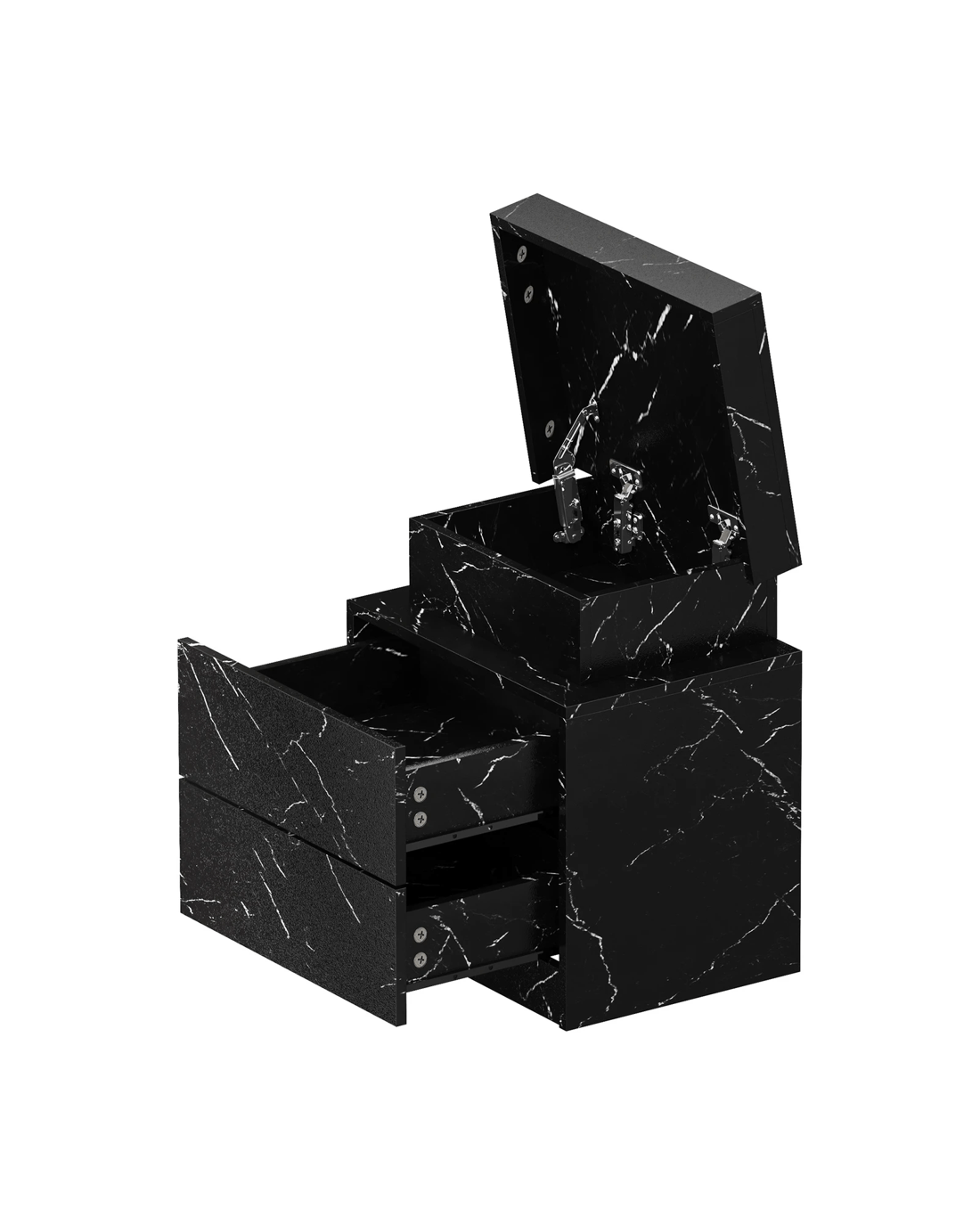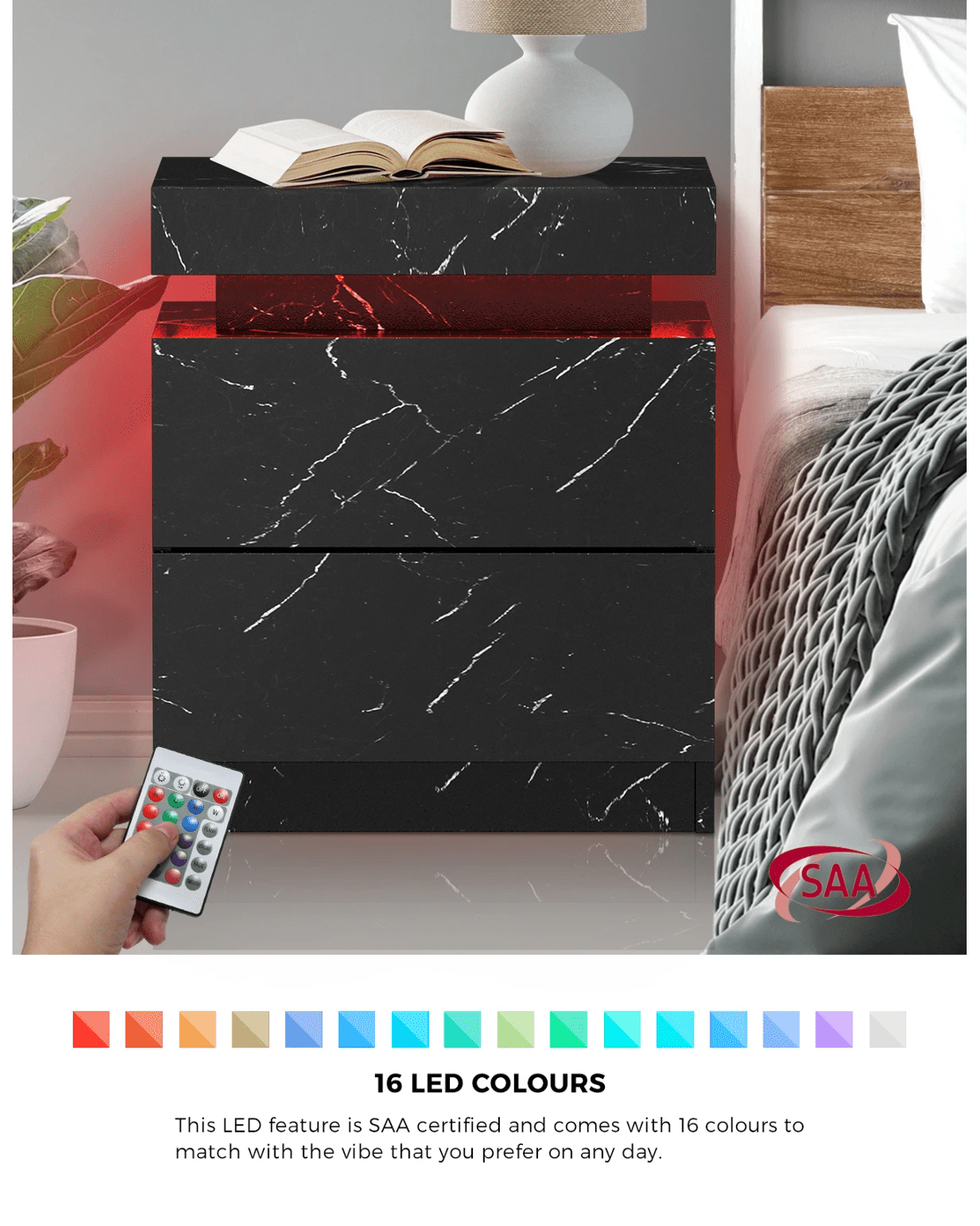 Sold by Kamprad's Oikos 1943Oikiture Bedside Table 2 Drawers Led Side Nightstand Marble Effect - Black