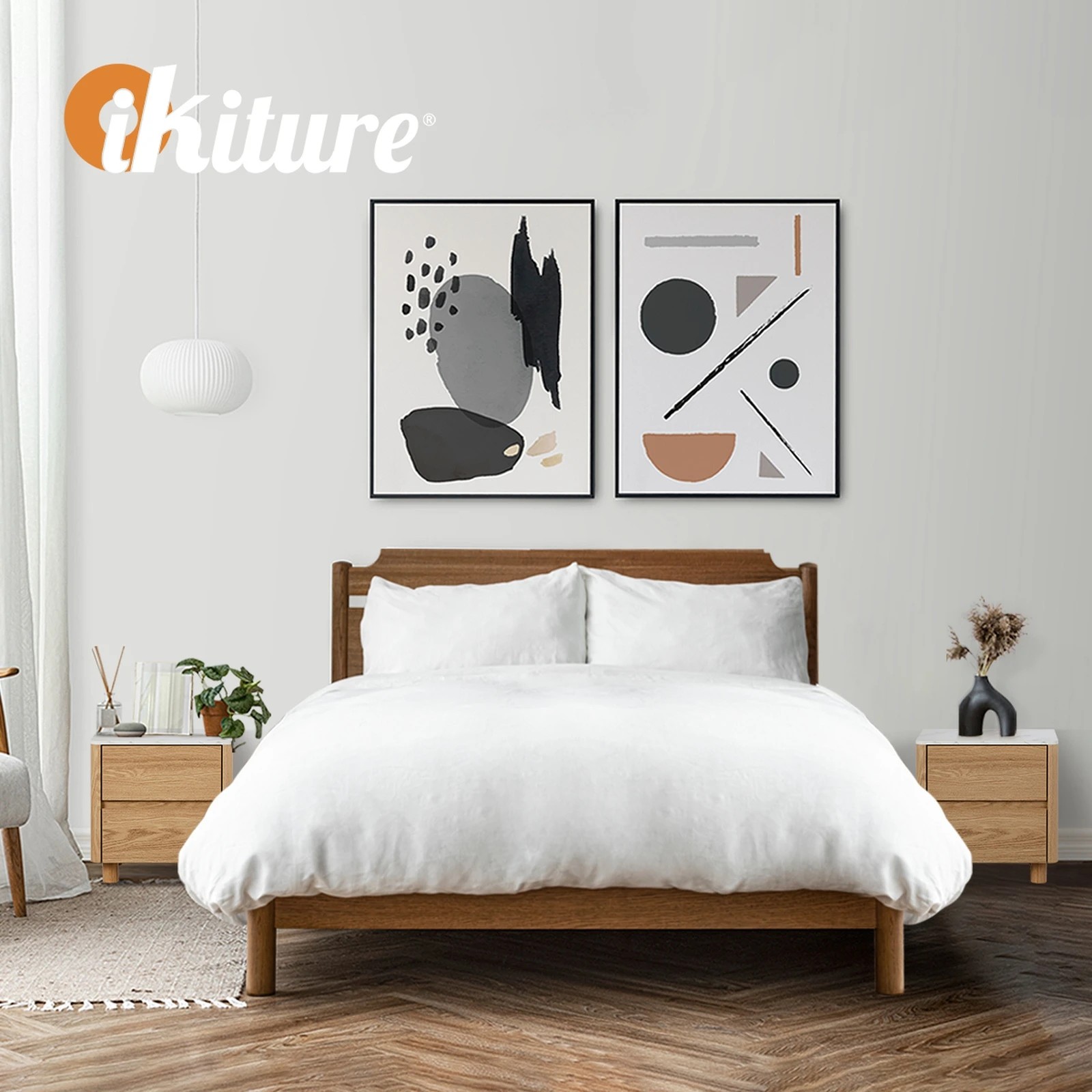 Oikiture Bedside Table 2 Drawers Nightstand Faux Marble Top - Natural