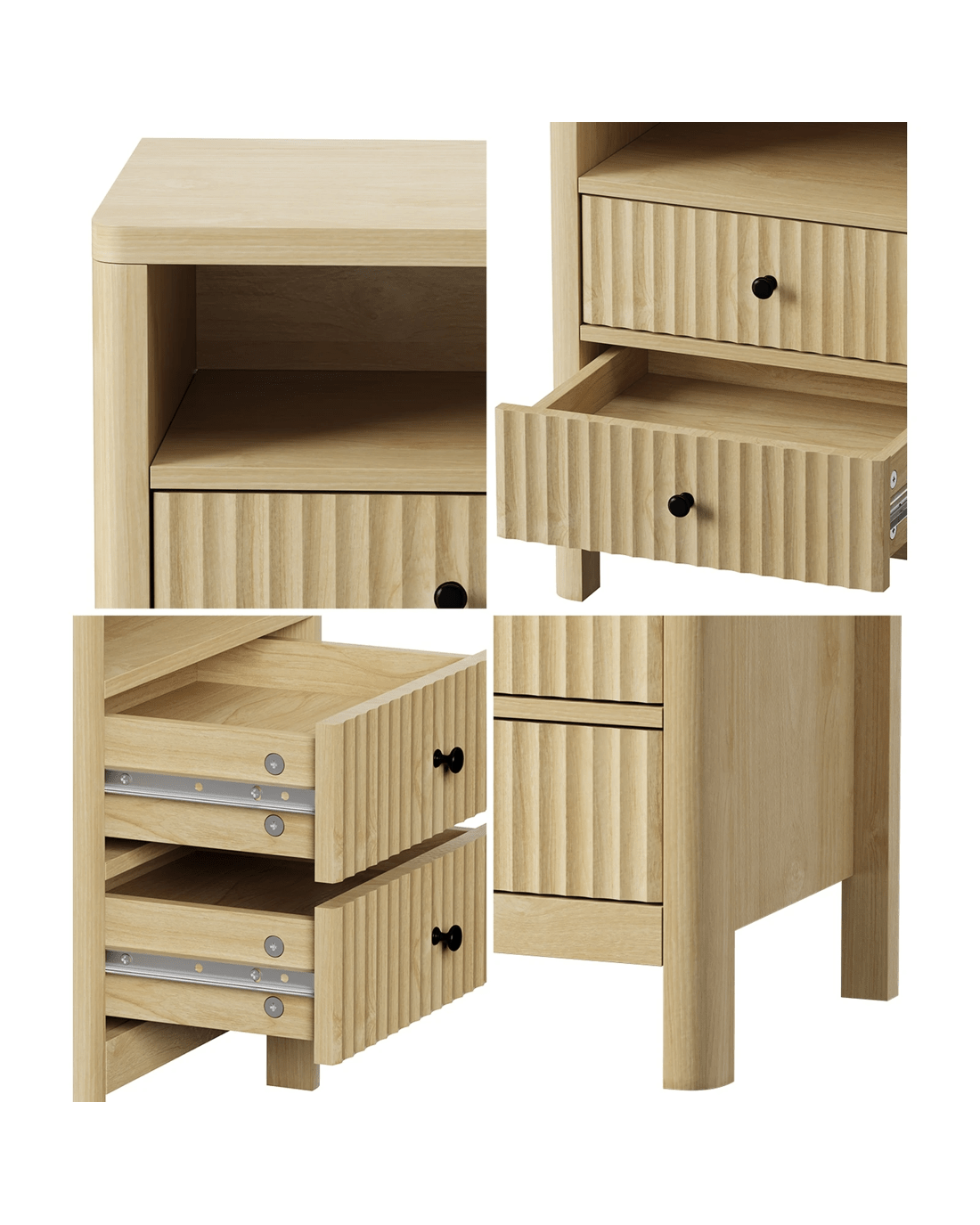 With its attractive woodgrain textures, our bedside table exudes instant designer vibes and will sit well with any modern and discerning home d篓娄cor. The beautiful rippled front panel of the drawer front further adds even more character and charisma to its elegant presence.