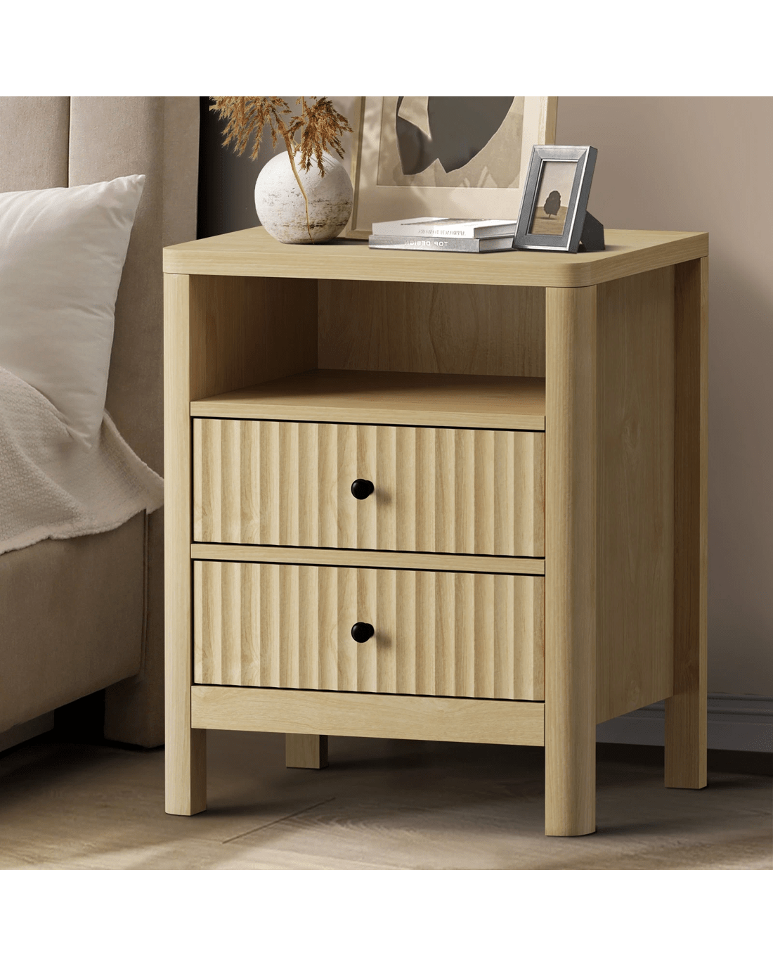 Sold by Kamprad's Oikos 1943Oikiture Bedside Table 2 Drawers Side End Tables Nightstand Open Shelf - Natural