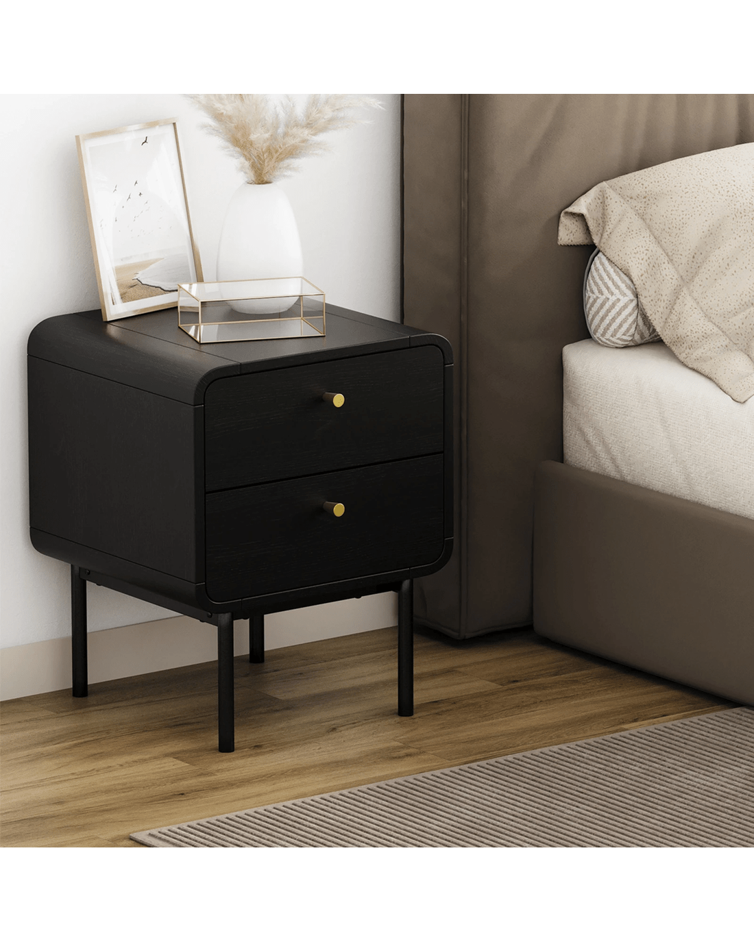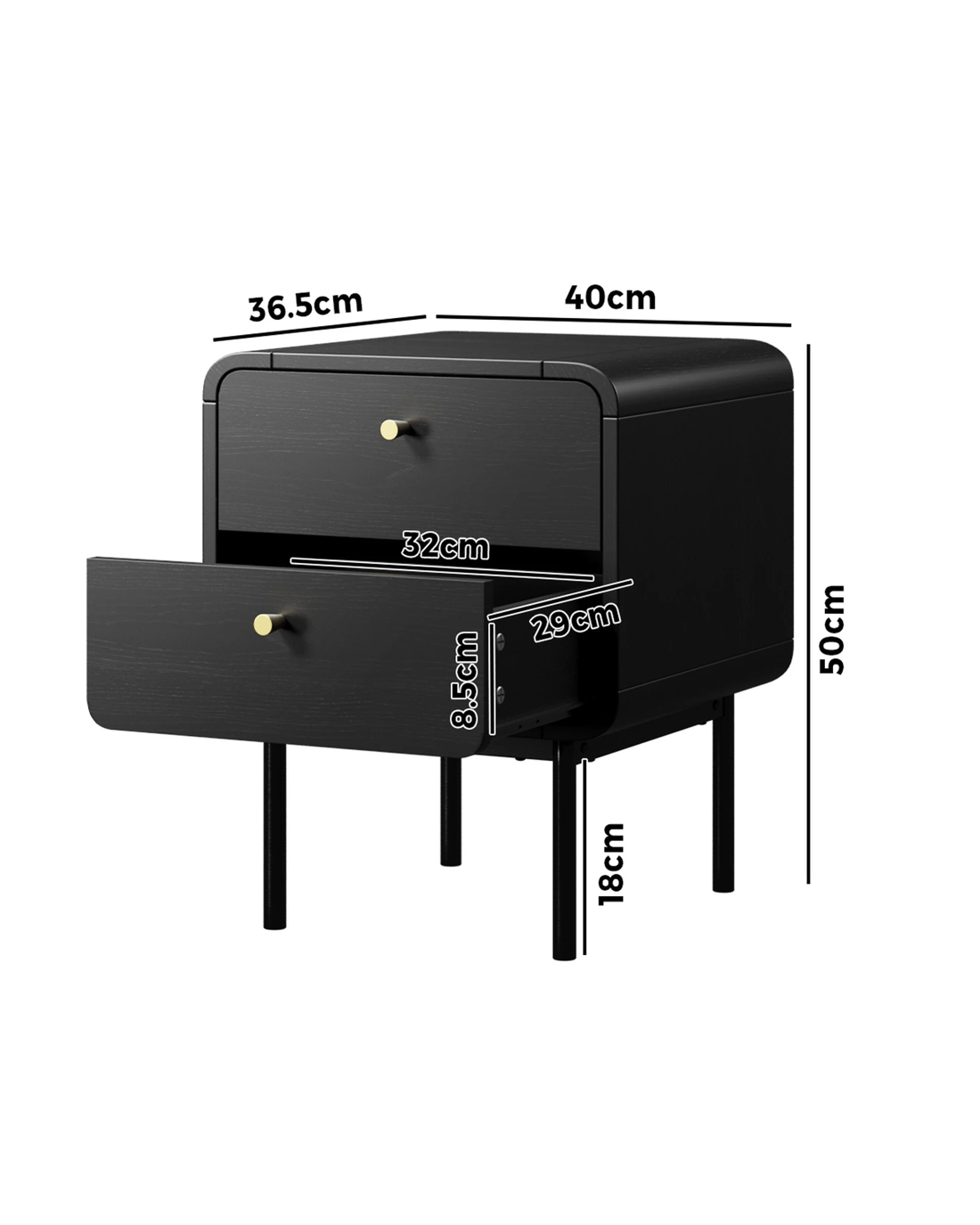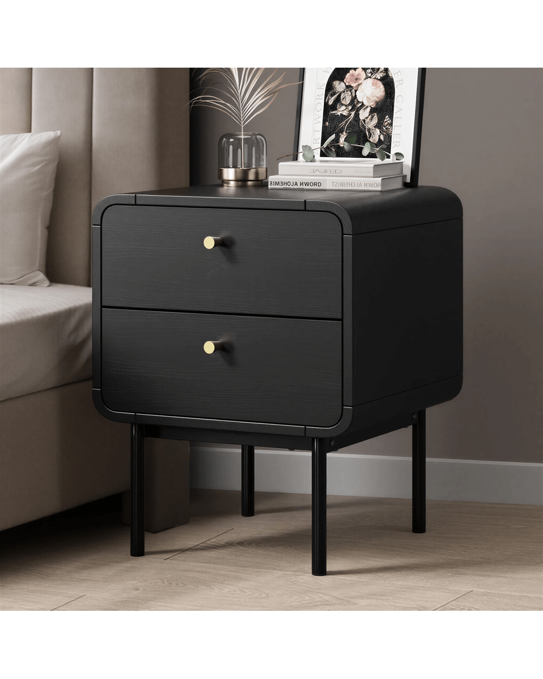 Oikiture Bedside Table 2 Drawers Side Table Bedroom Nightstand Metal - Black