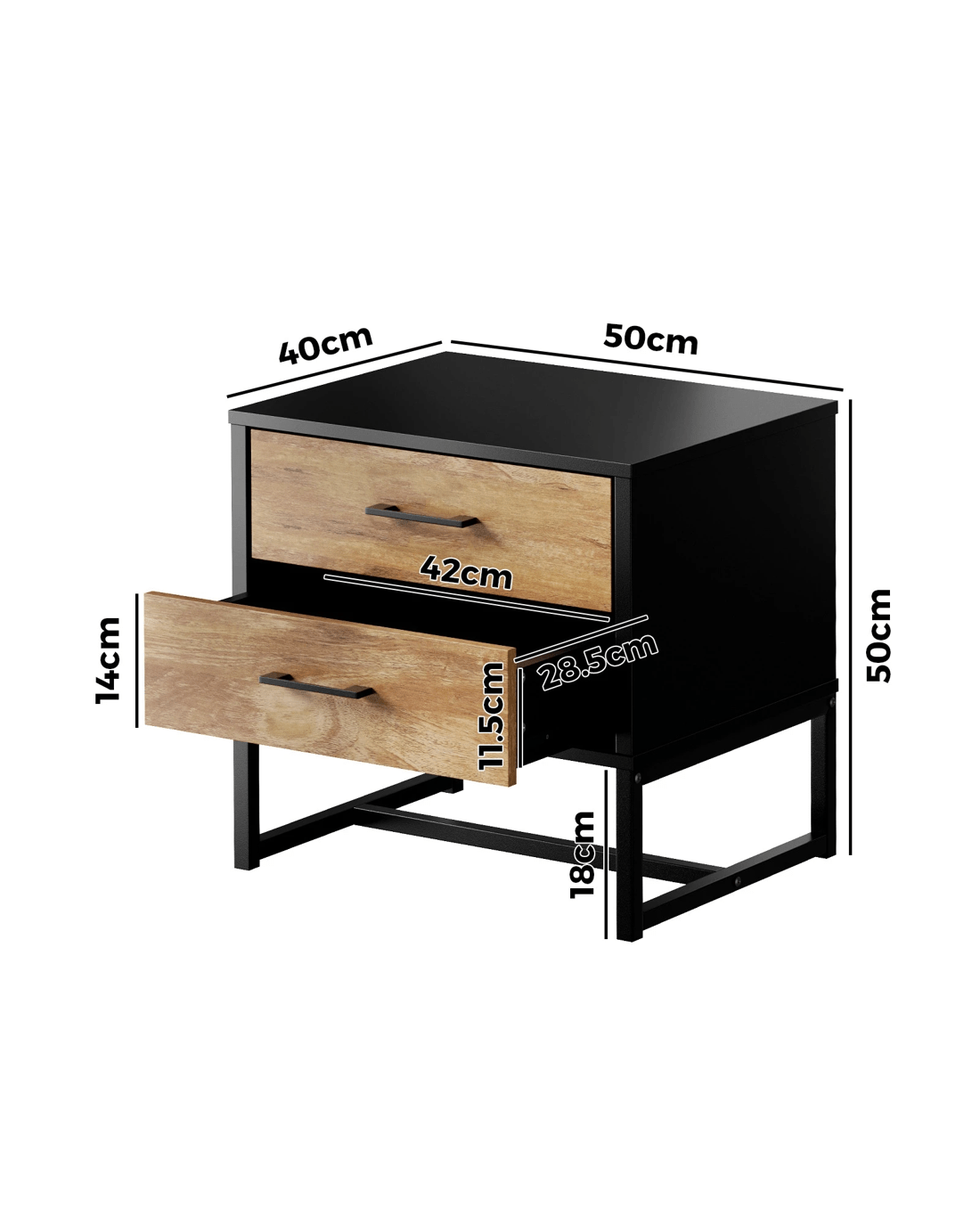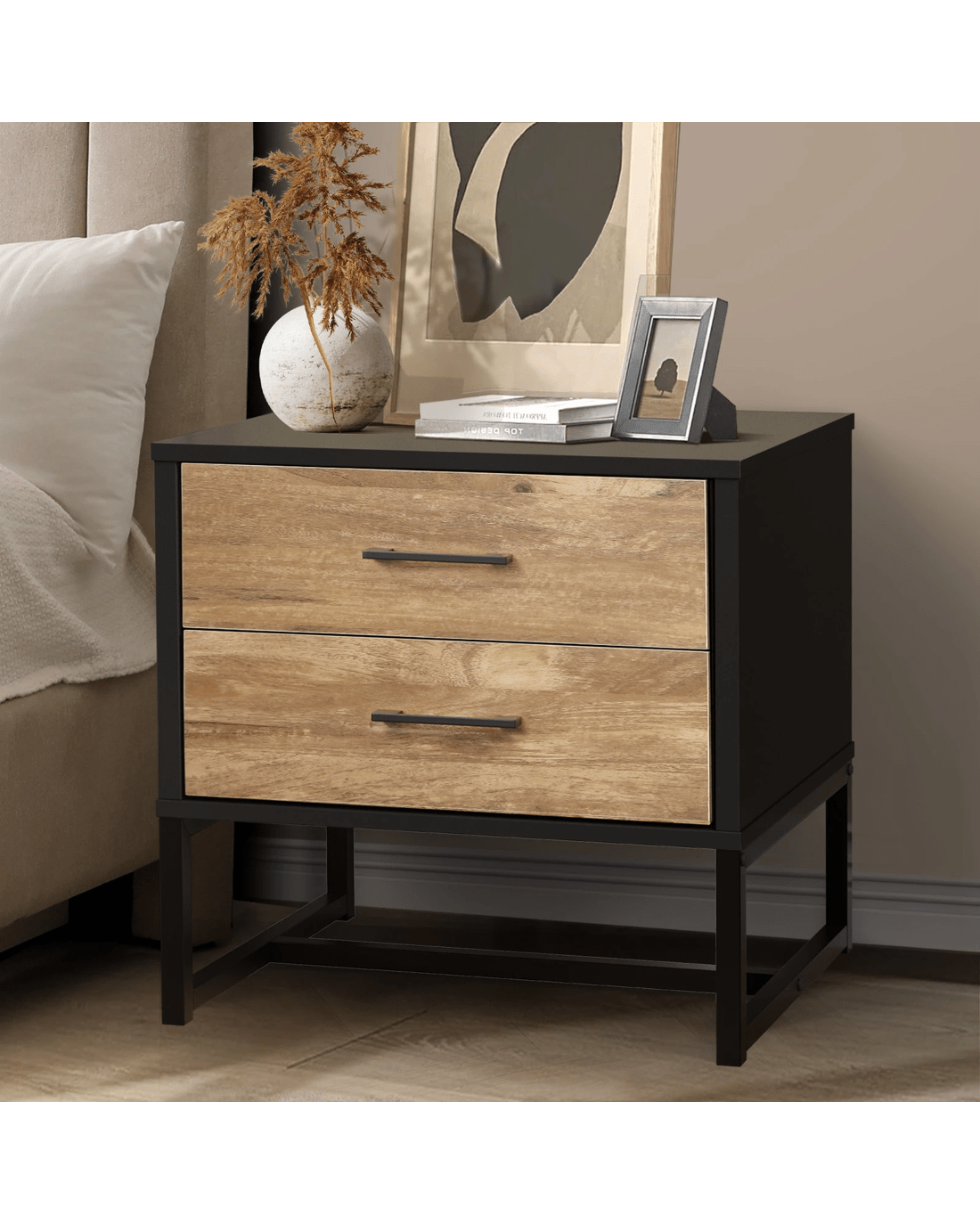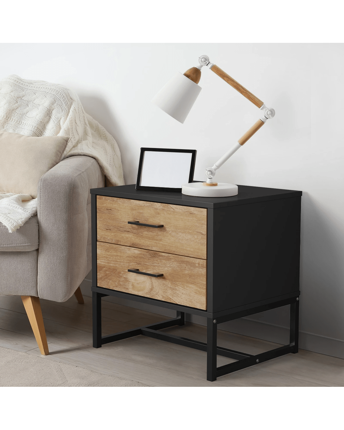 Sold by Kamprad's Oikos 1943Oikiture Bedside Table 2 Drawers Side Tables Storage Nightstand Metal - Multi