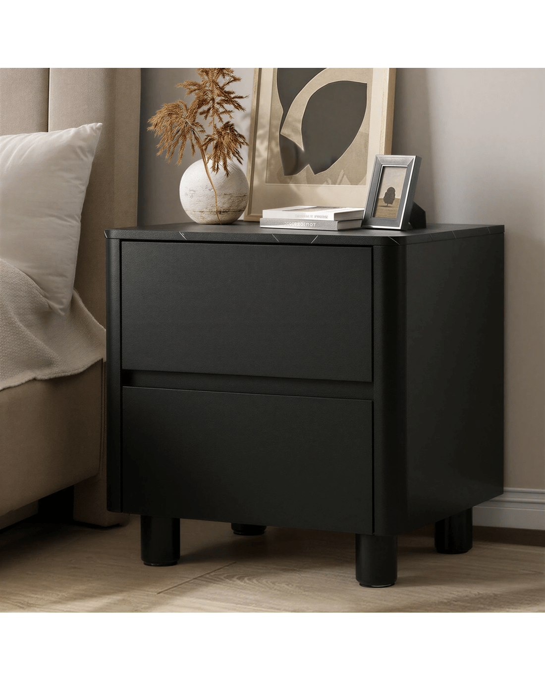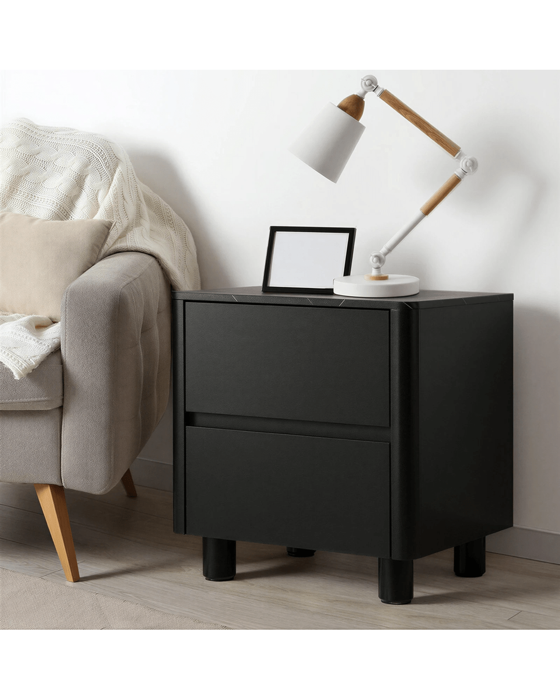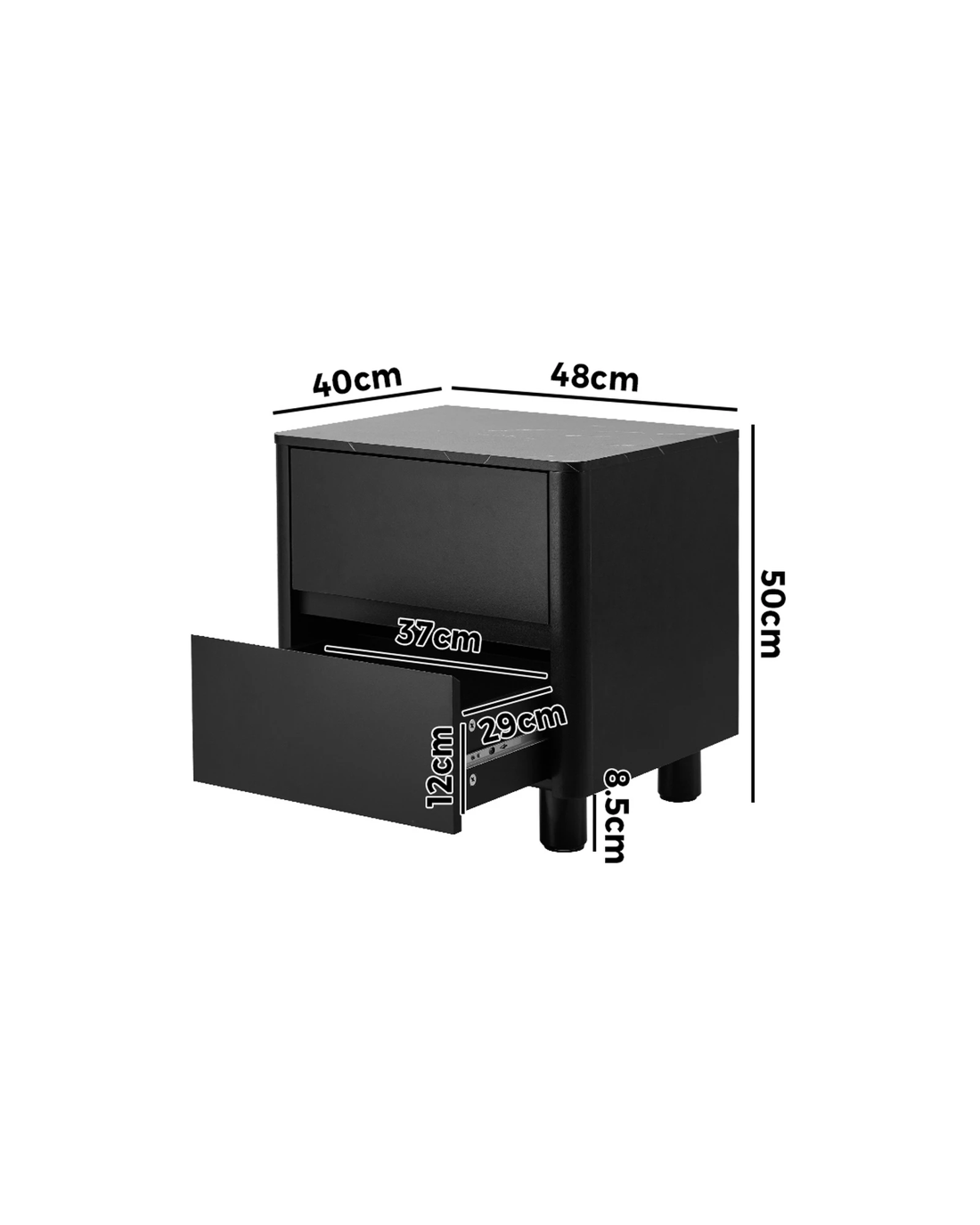 Sold by Kamprad's Oikos 1943Oikiture Bedside Table 2 Drawers Storage Cabinet Nightstand Side Table - Black