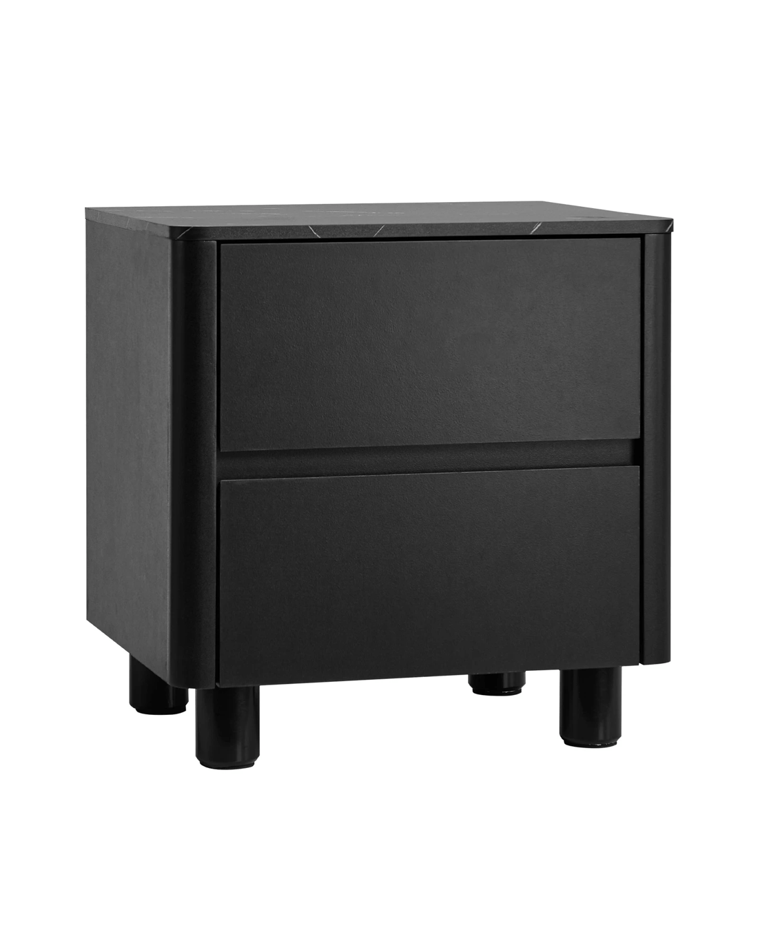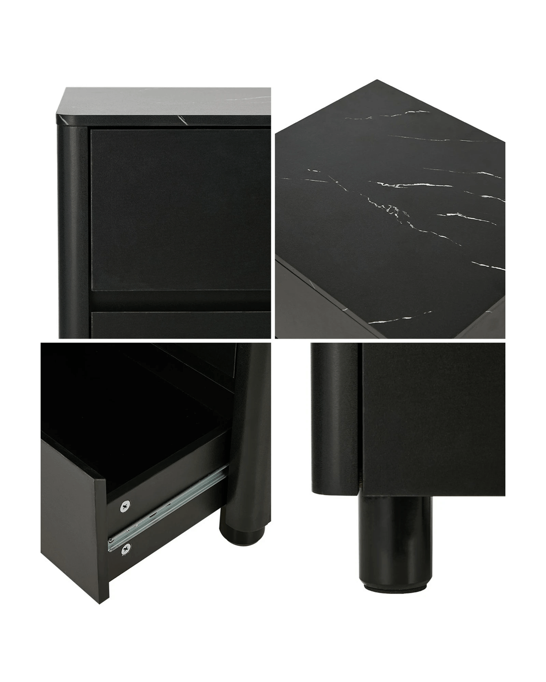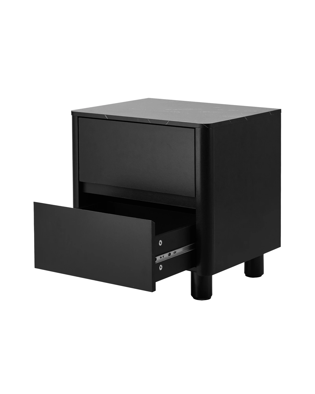 An exceptional piece of furniture that blends the ordinary with the extraordinary, our bedside table features a faux marble top surface and an attractive black finish. A touch of luxurious sophistication no less.