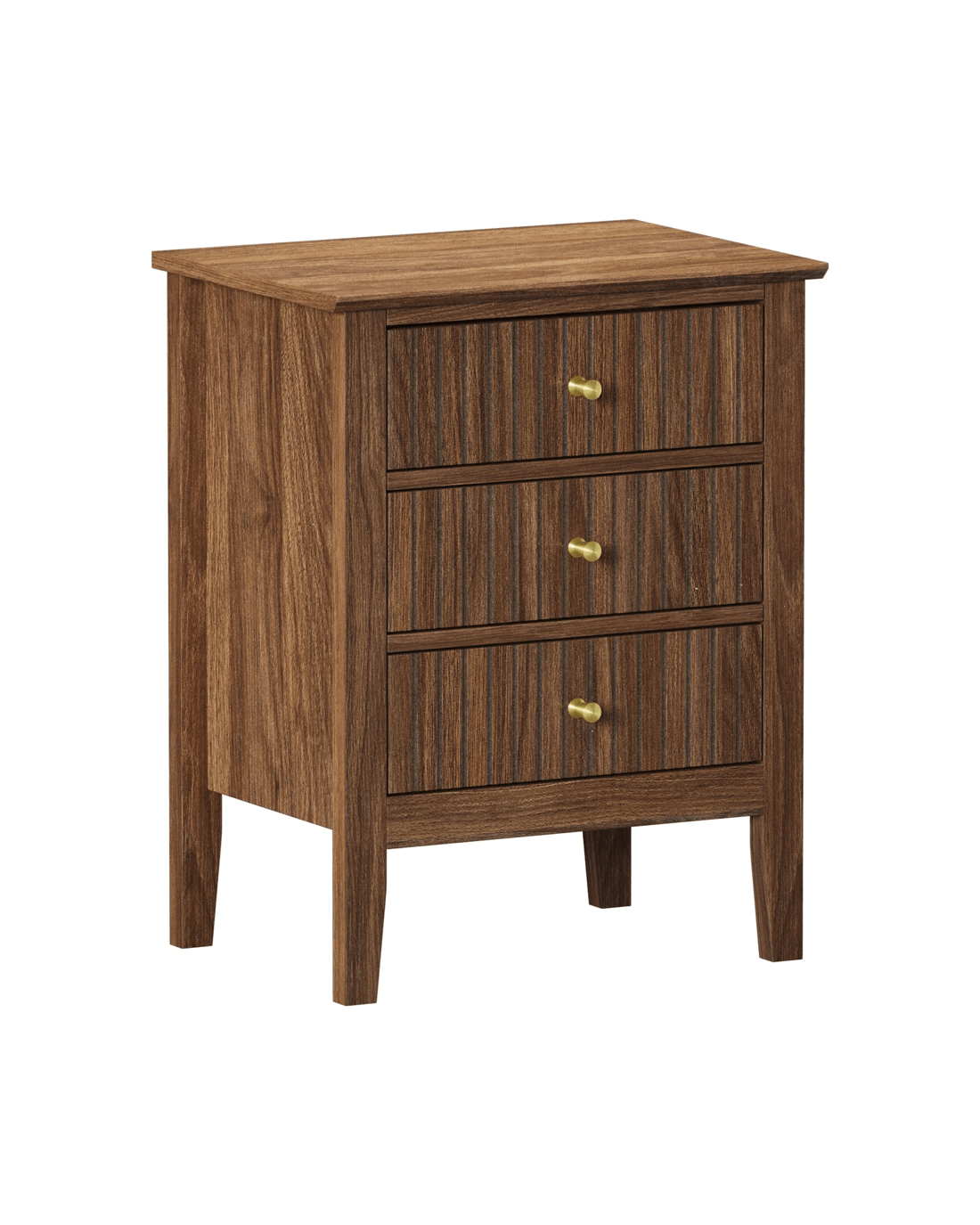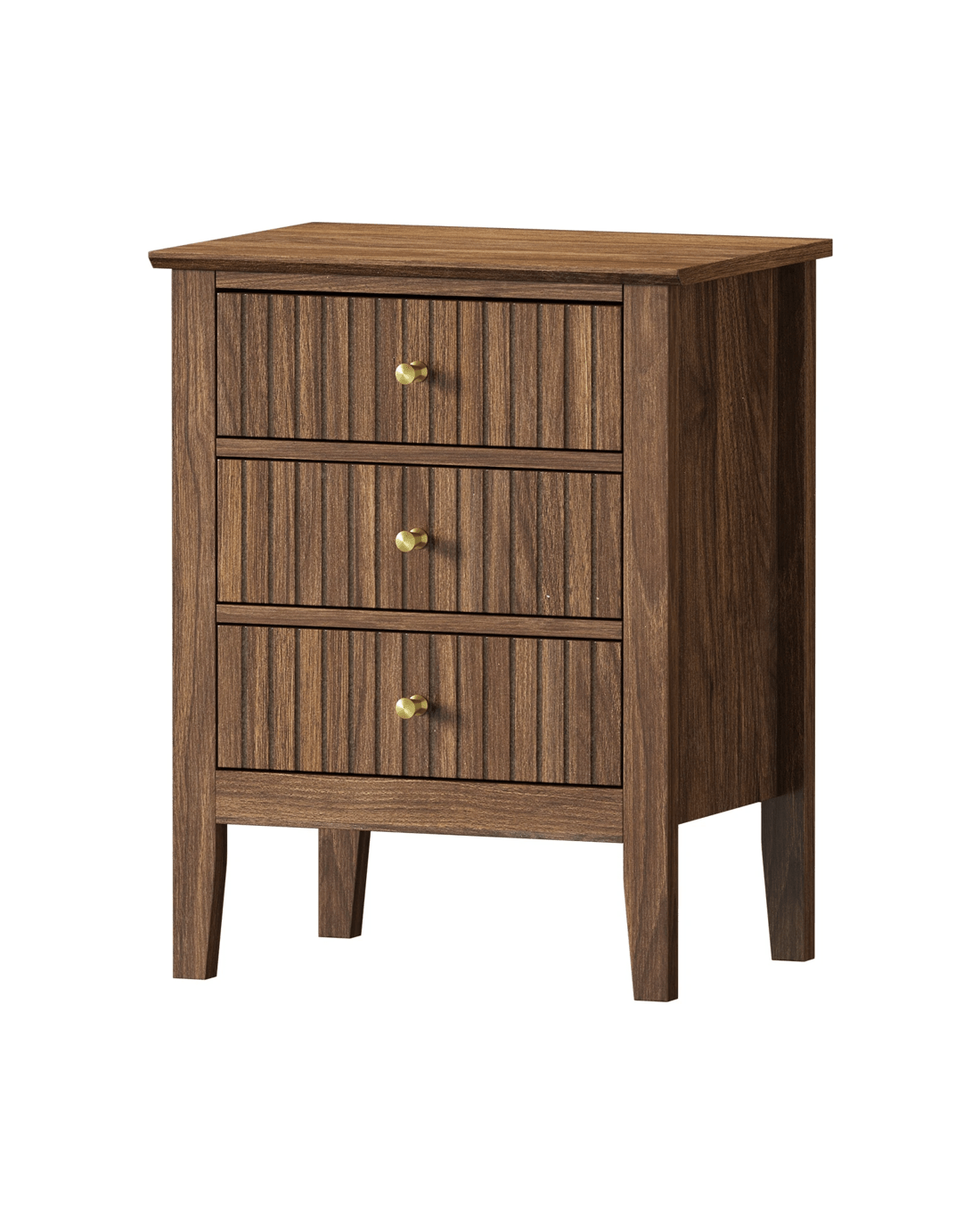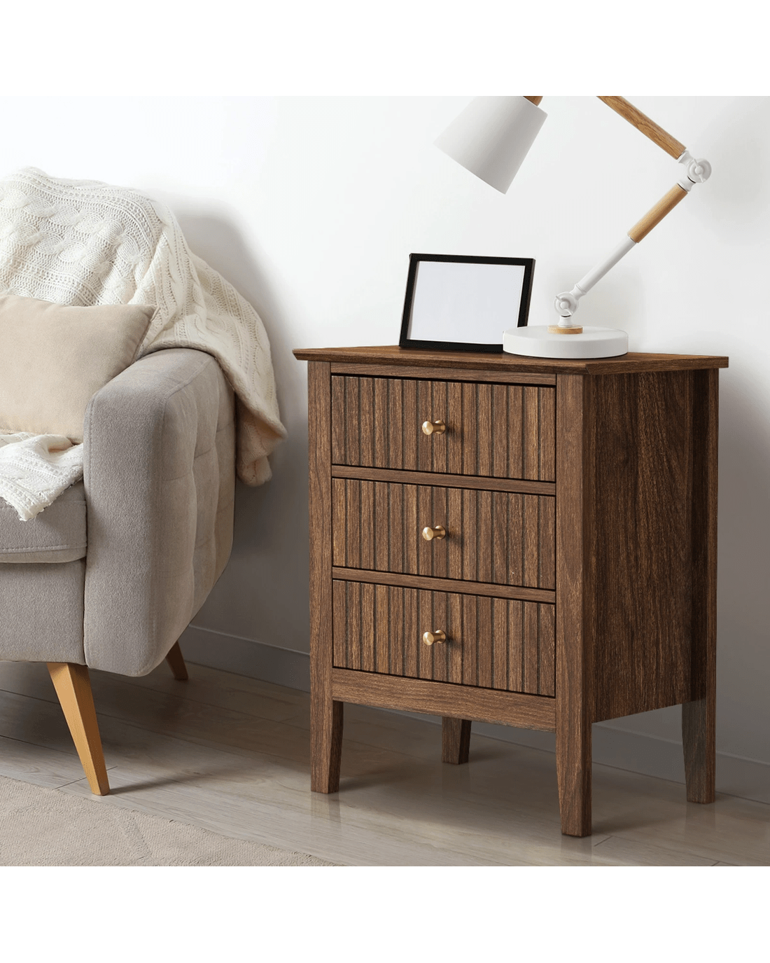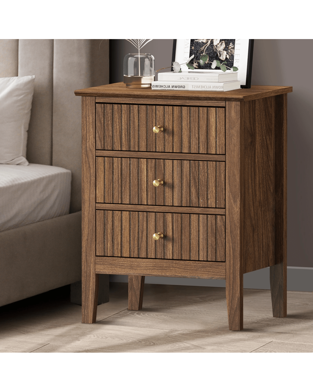 In terms of style, the bedside table has all the vibes of a cottage-inspired piece that stands out from the ordinary. With character and presence to add a rustic touch to your decor. The triple drawers, with stripe textured fronts, are blessed with ample space whilst the auric-hue brass handles make for easy opening and closing besides their aesthetic qualities.