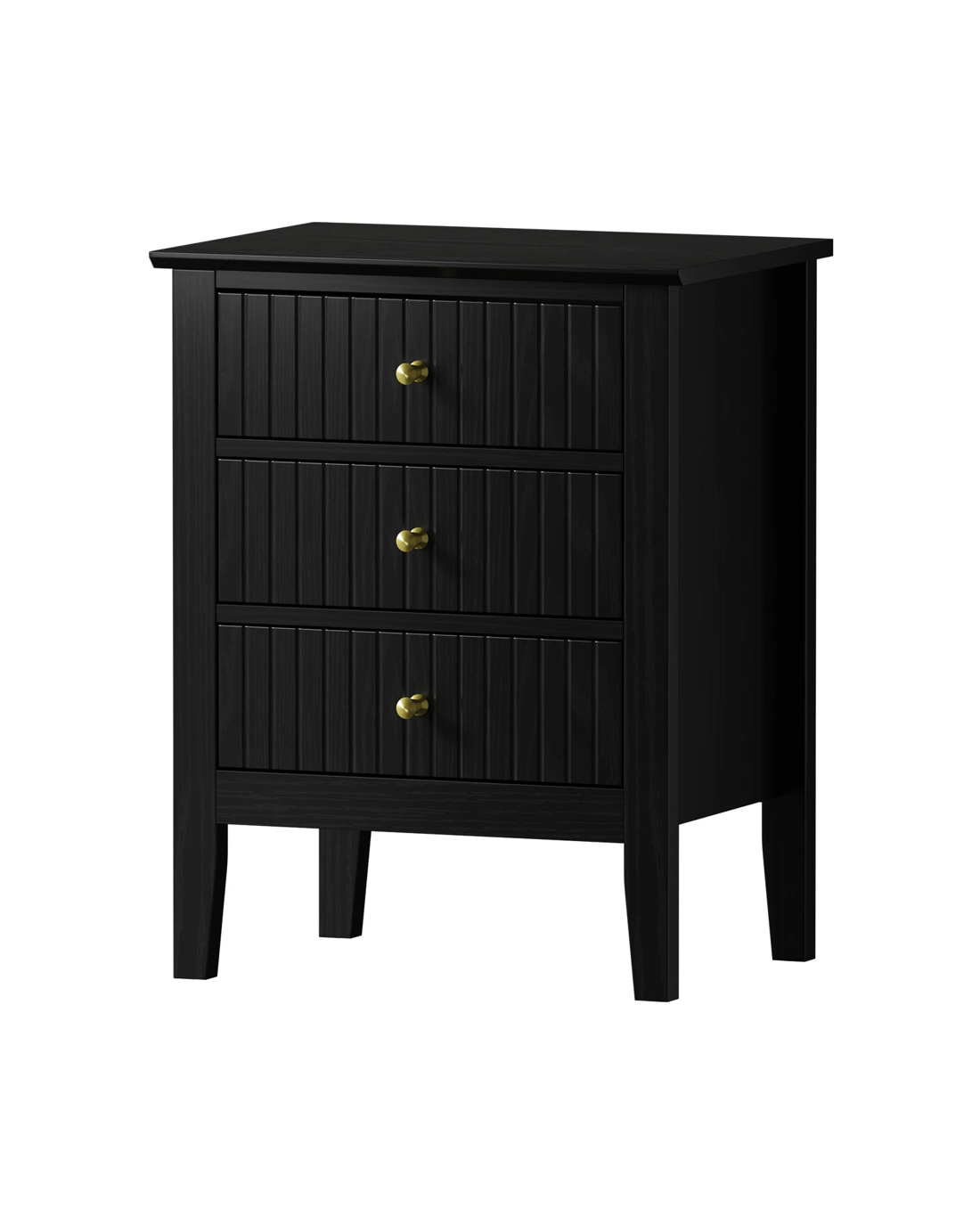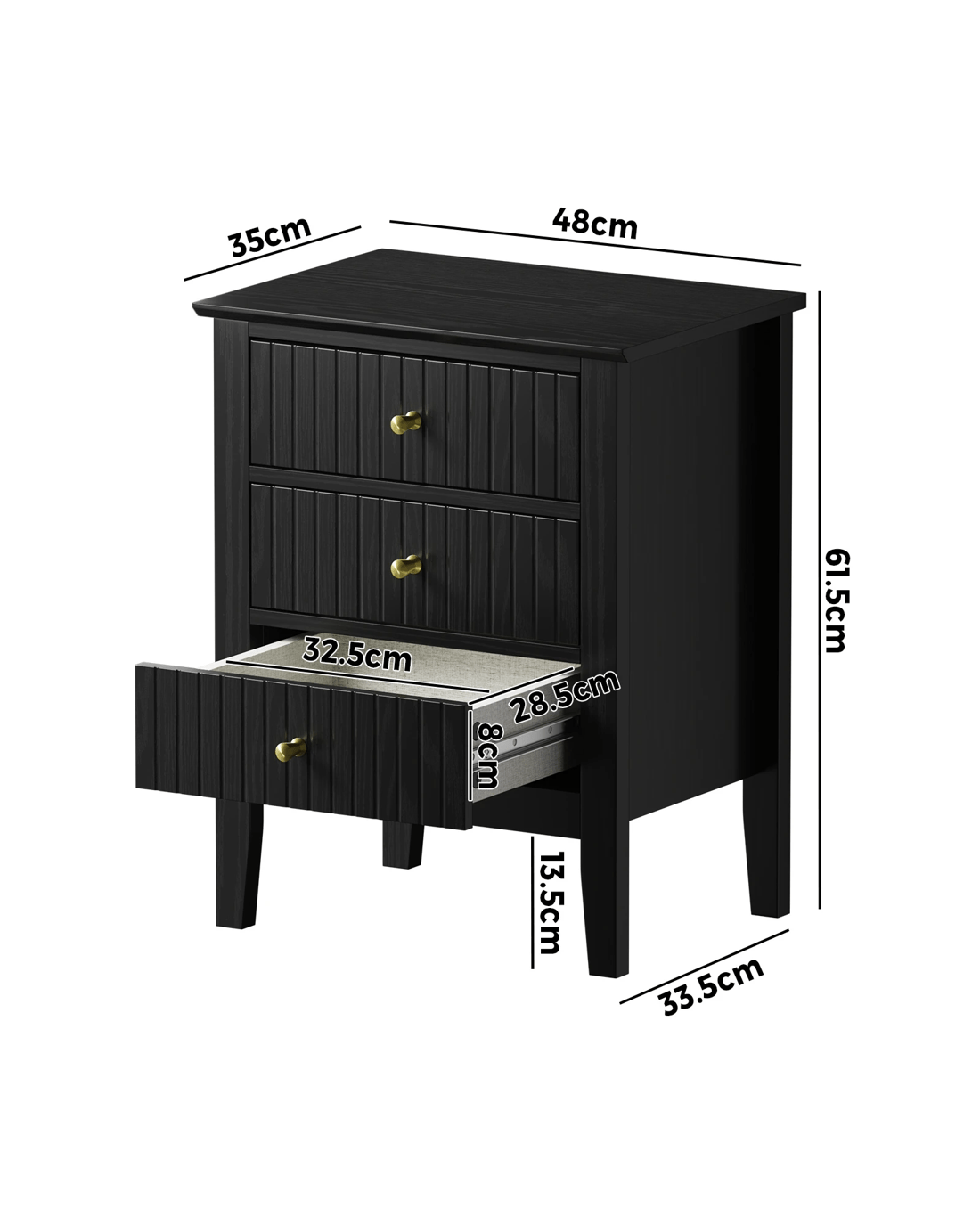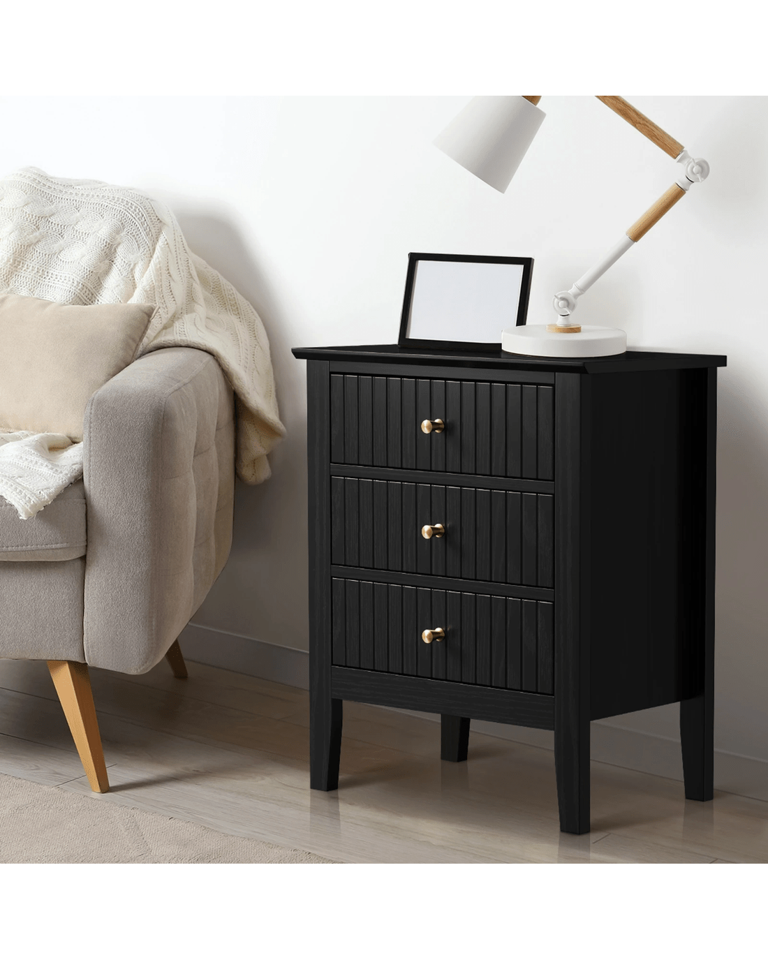 Sold by Kamprad's Oikos 1943Oikiture Bedside Table 3 Drawers Side End Storage Furniture Nightstand - Black