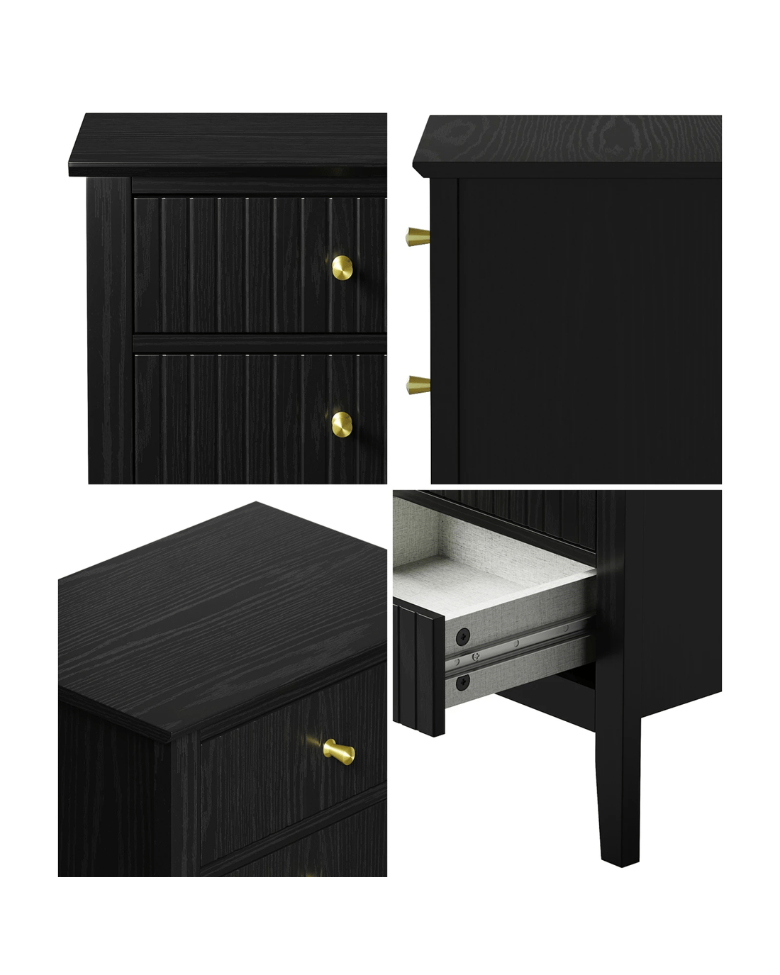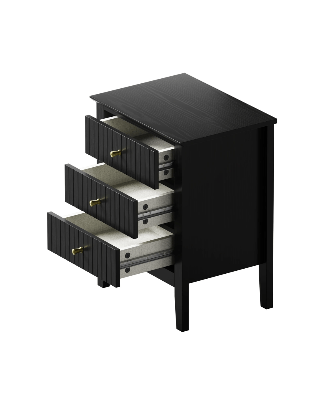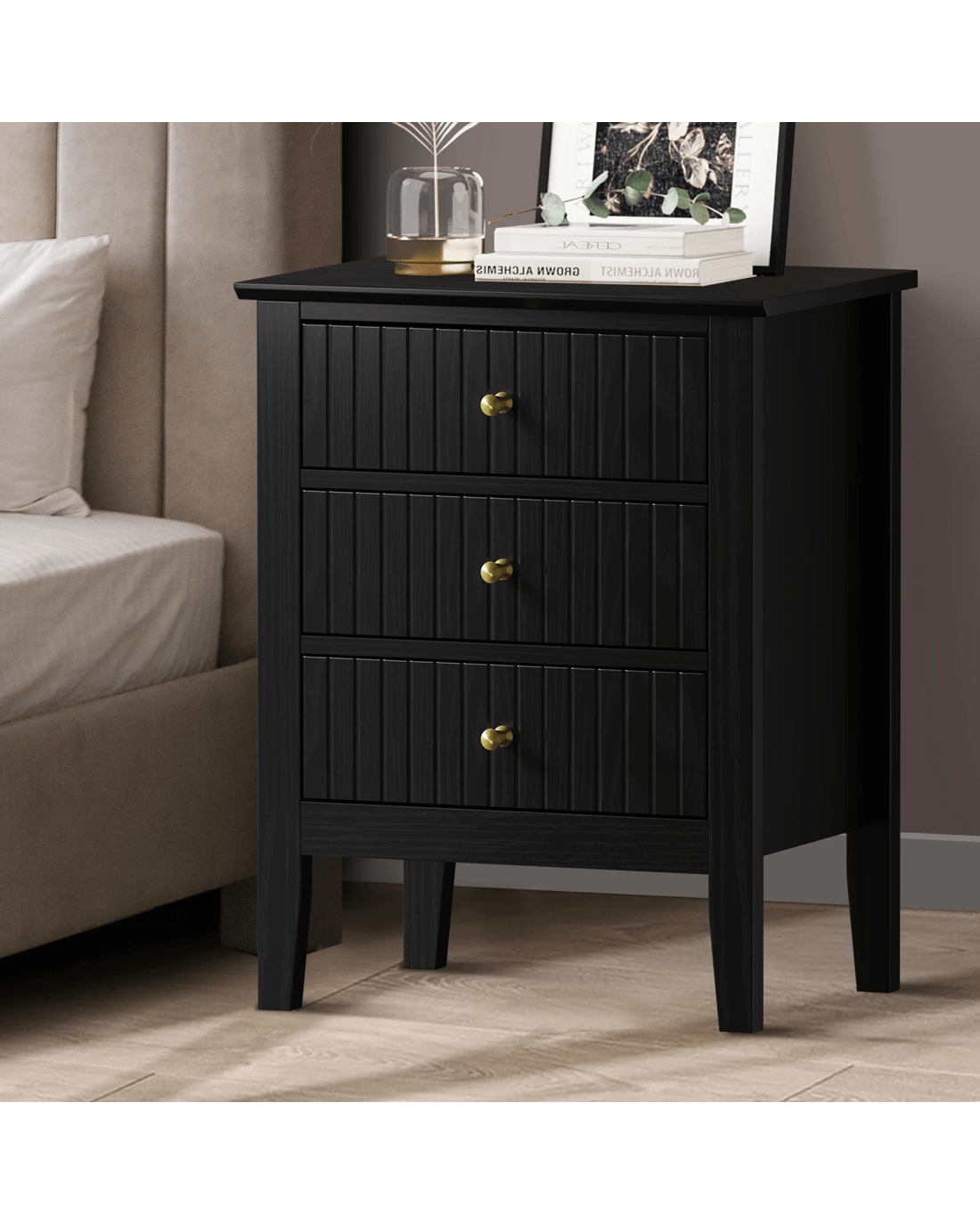 Sold by Kamprad's Oikos 1943Oikiture Bedside Table 3 Drawers Side End Storage Furniture Nightstand - Black