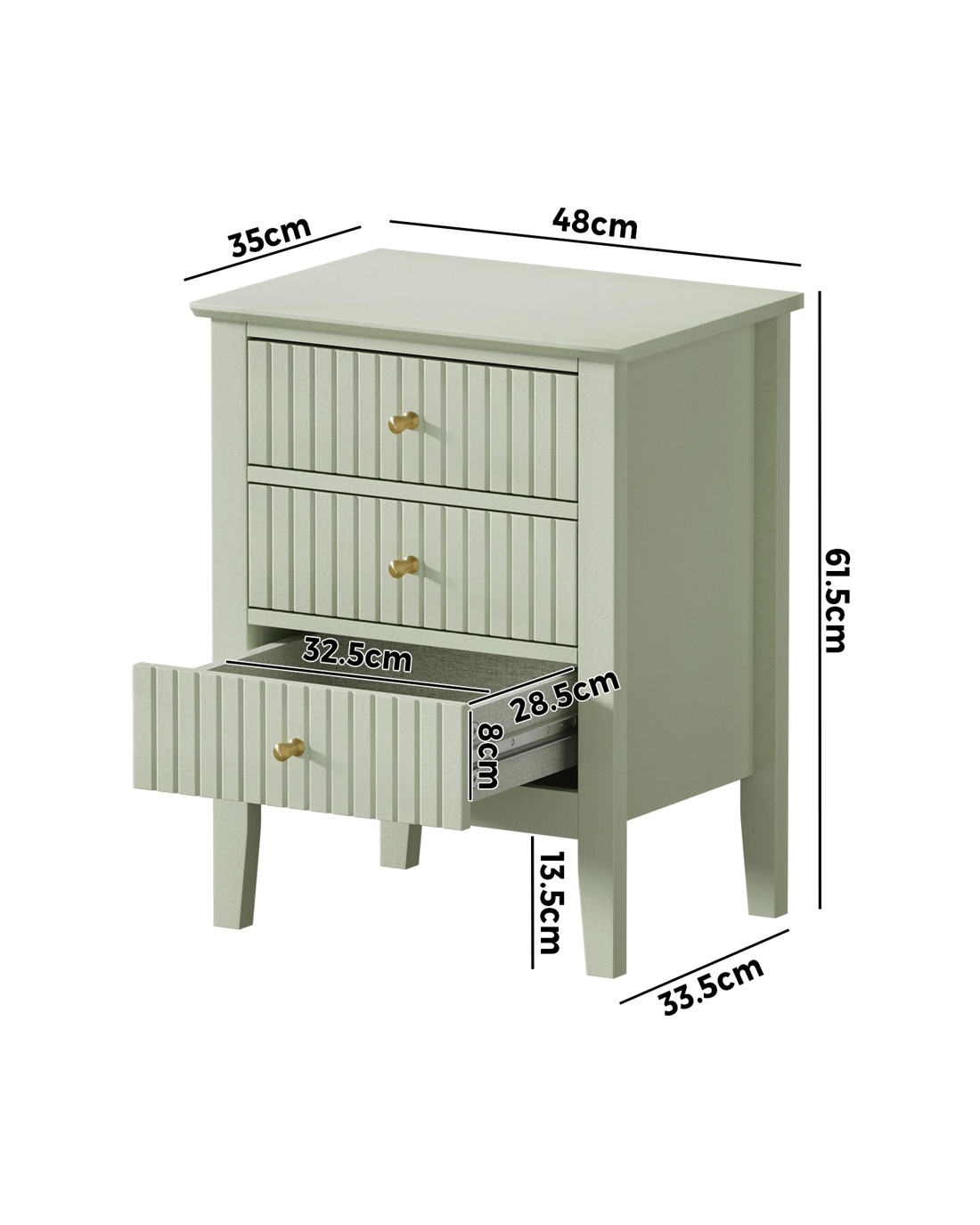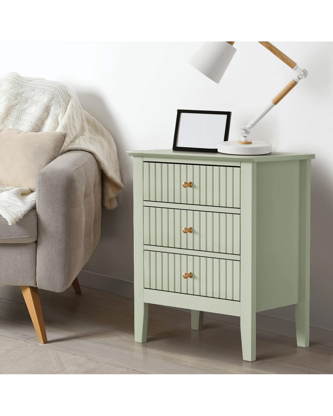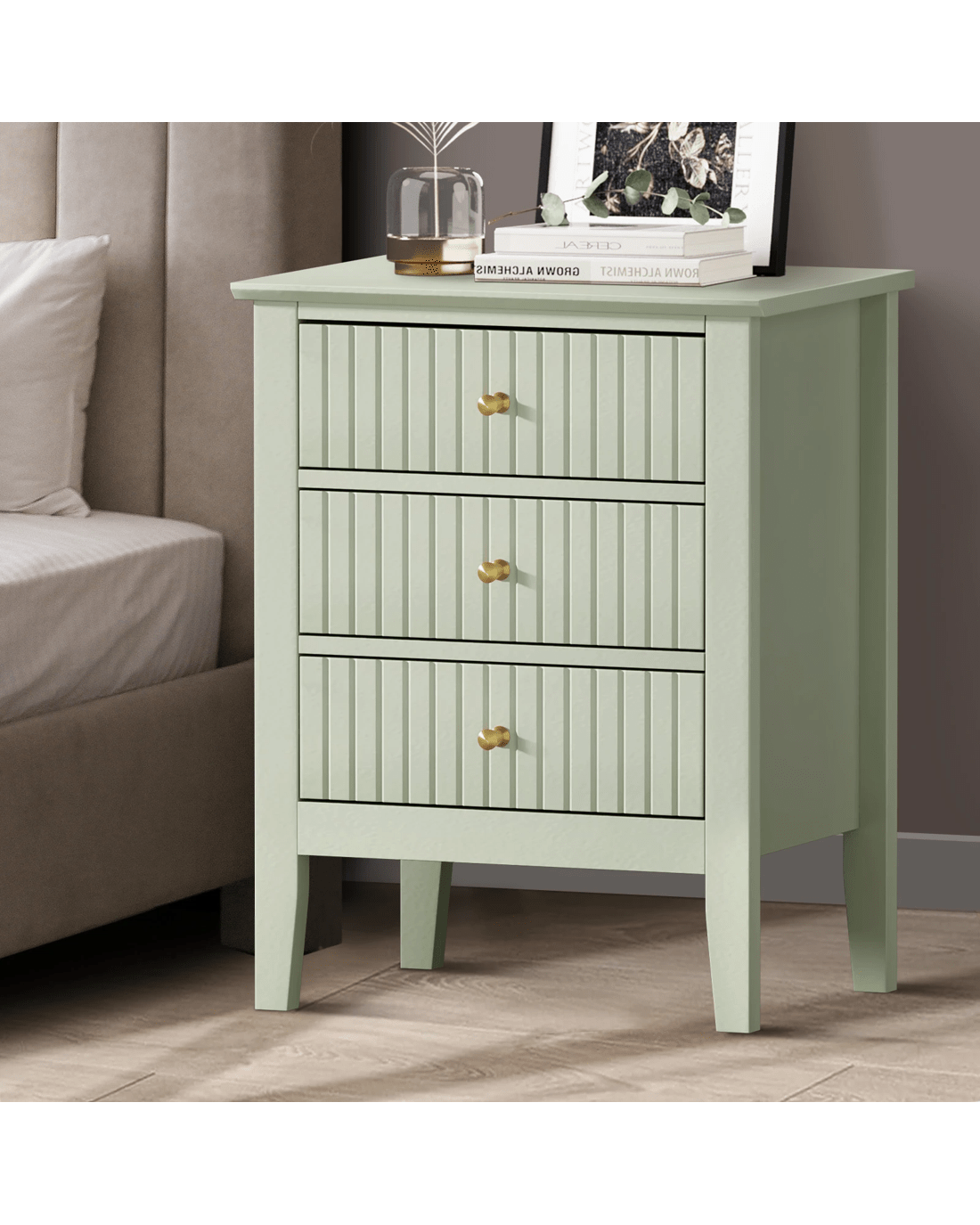 Sold by Kamprad's Oikos 1943Oikiture Bedside Table 3 Drawers Side End Storage Furniture Nightstand - Green