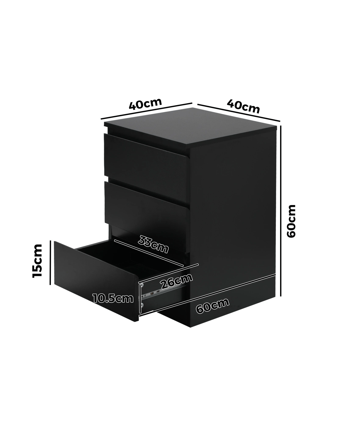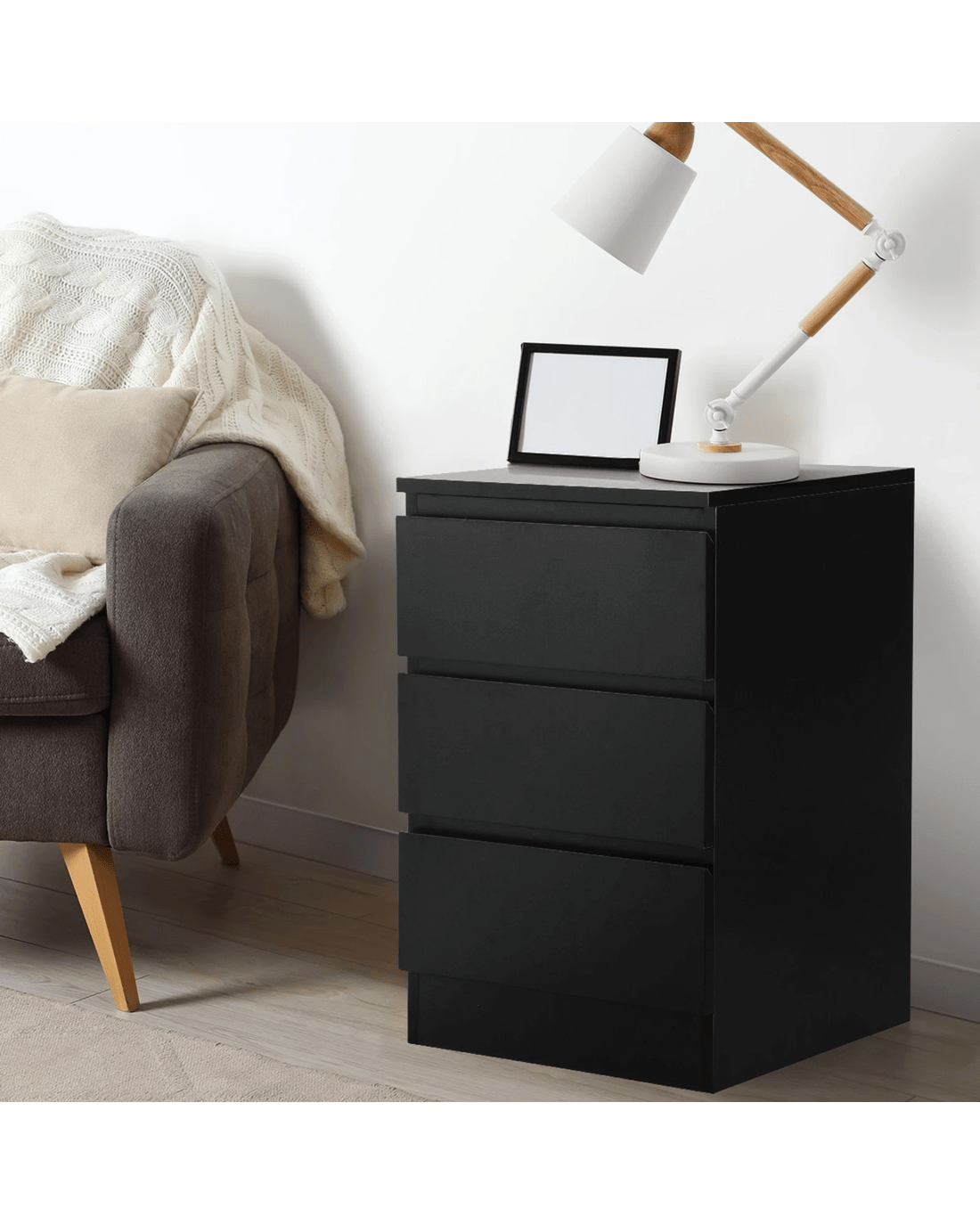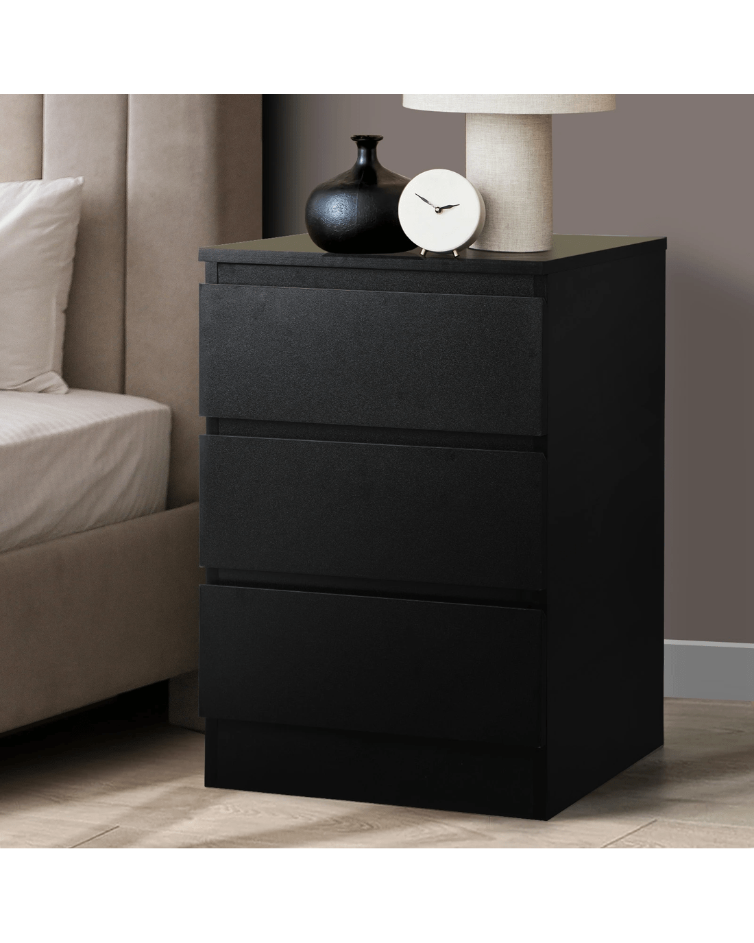 Sold by Kamprad's Oikos 1943Oikiture Bedside Table 3 Drawers Side Tables Storage Cabinet Nightstand - Black
