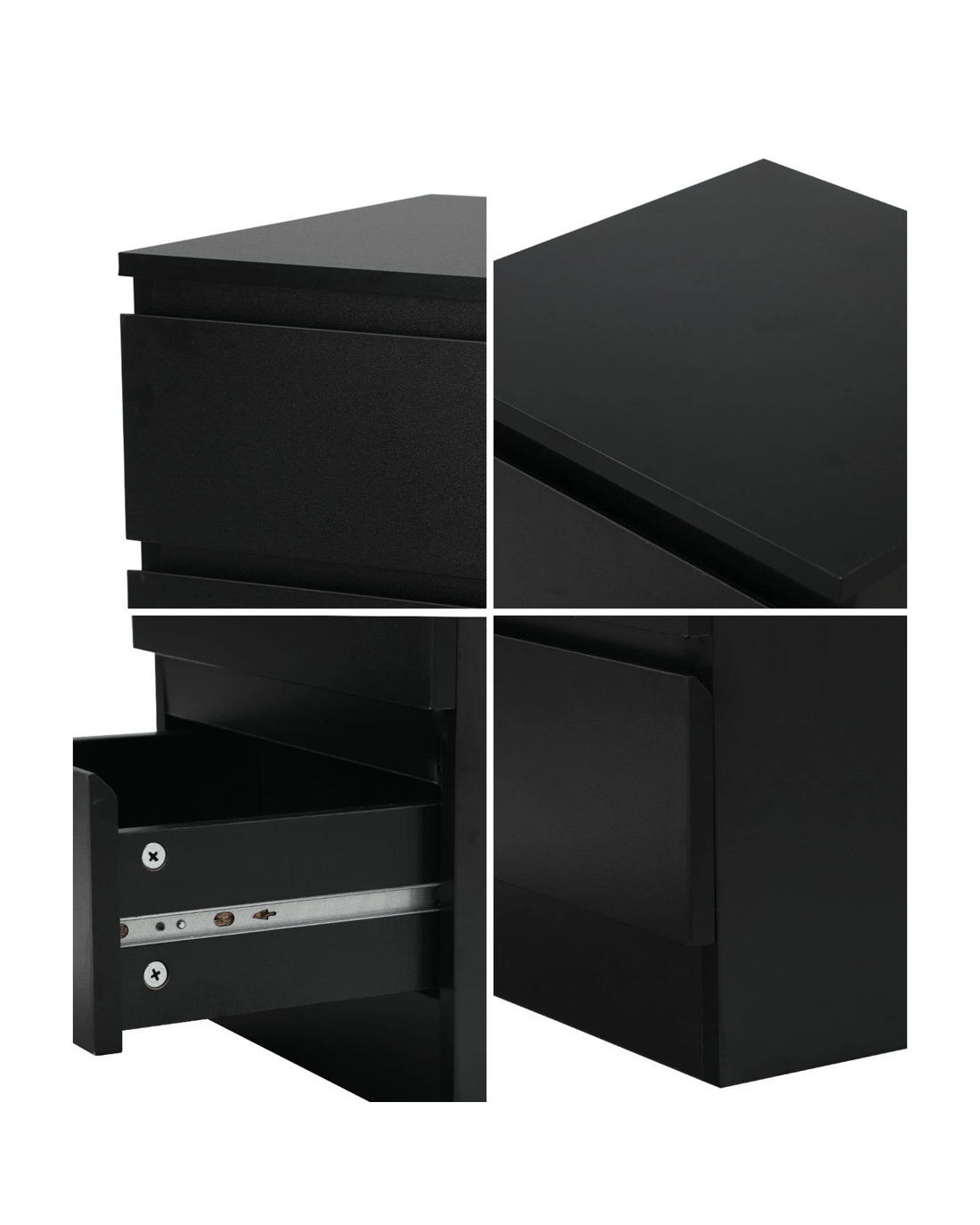 The finishing is near flawless with meticulous attention to details. Every aspect is smooth to the touch and every joint a harmonious fit. Likewise, the sturdy 15mm particle board construction with quality components ensures that the bedside table will serve its purpose with total durability and longevity.