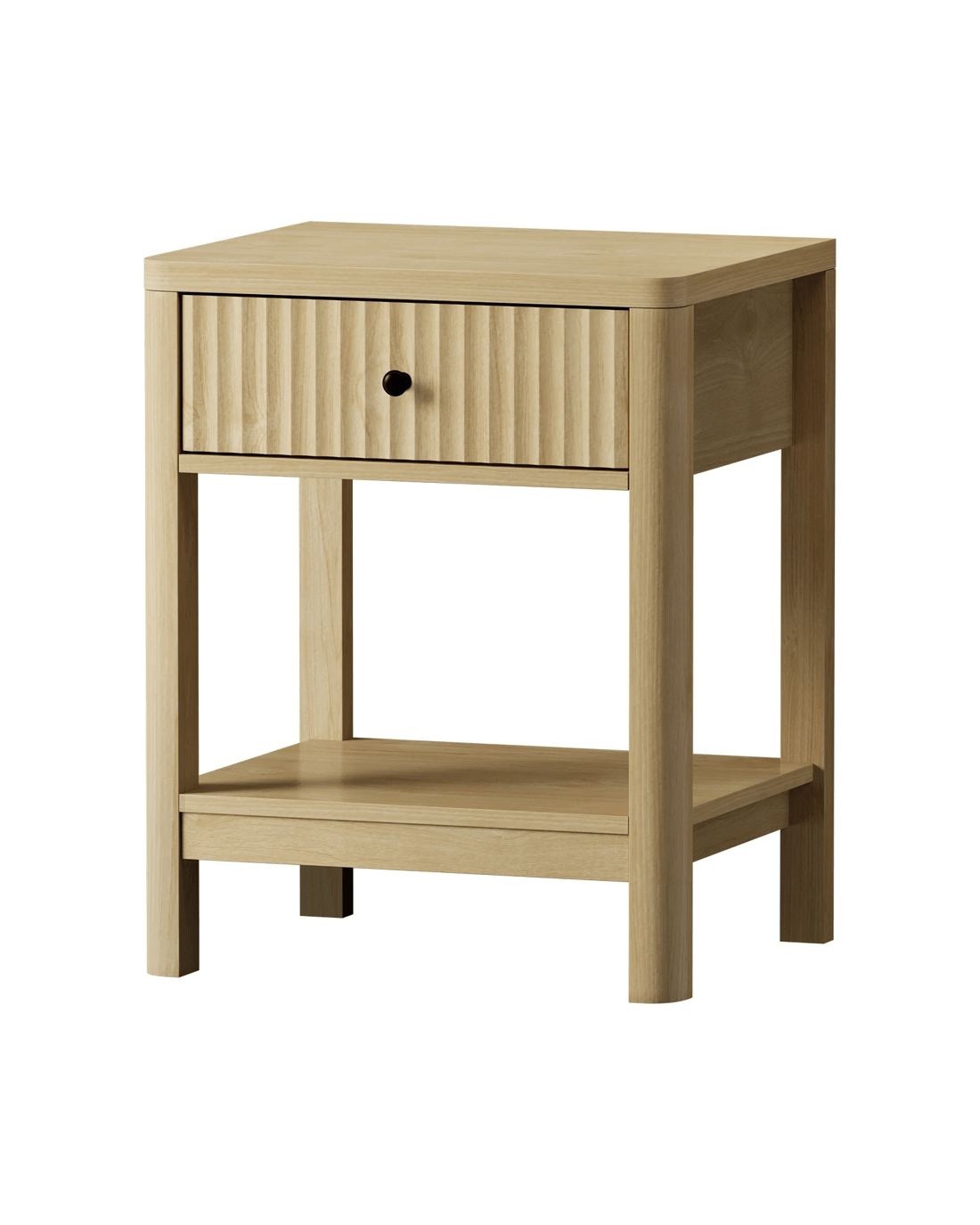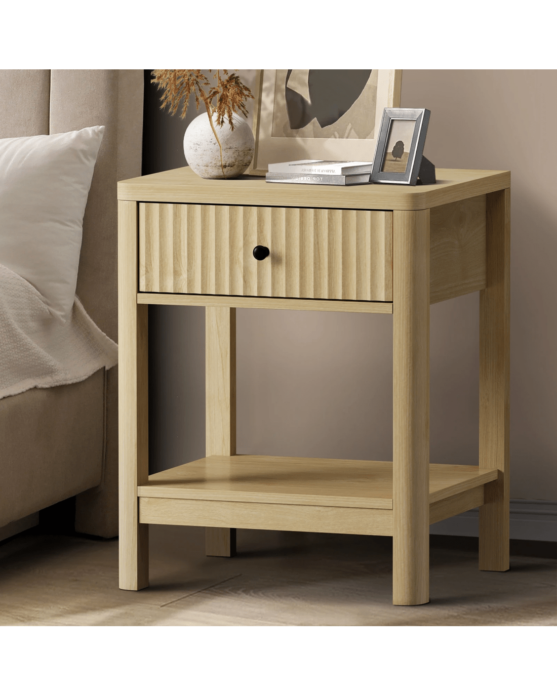 With its attractive woodgrain textures, our bedside table exudes instant designer vibes and will sit well with any modern and discerning home d篓娄cor. The beautiful rippled front panel of the drawer front further adds even more character and charisma to its elegant presence.
