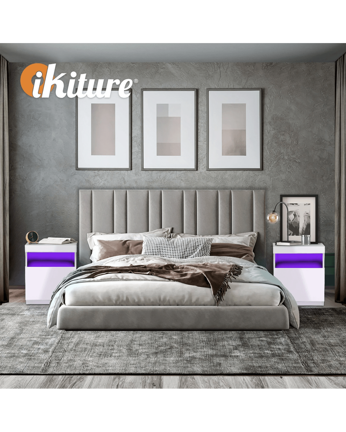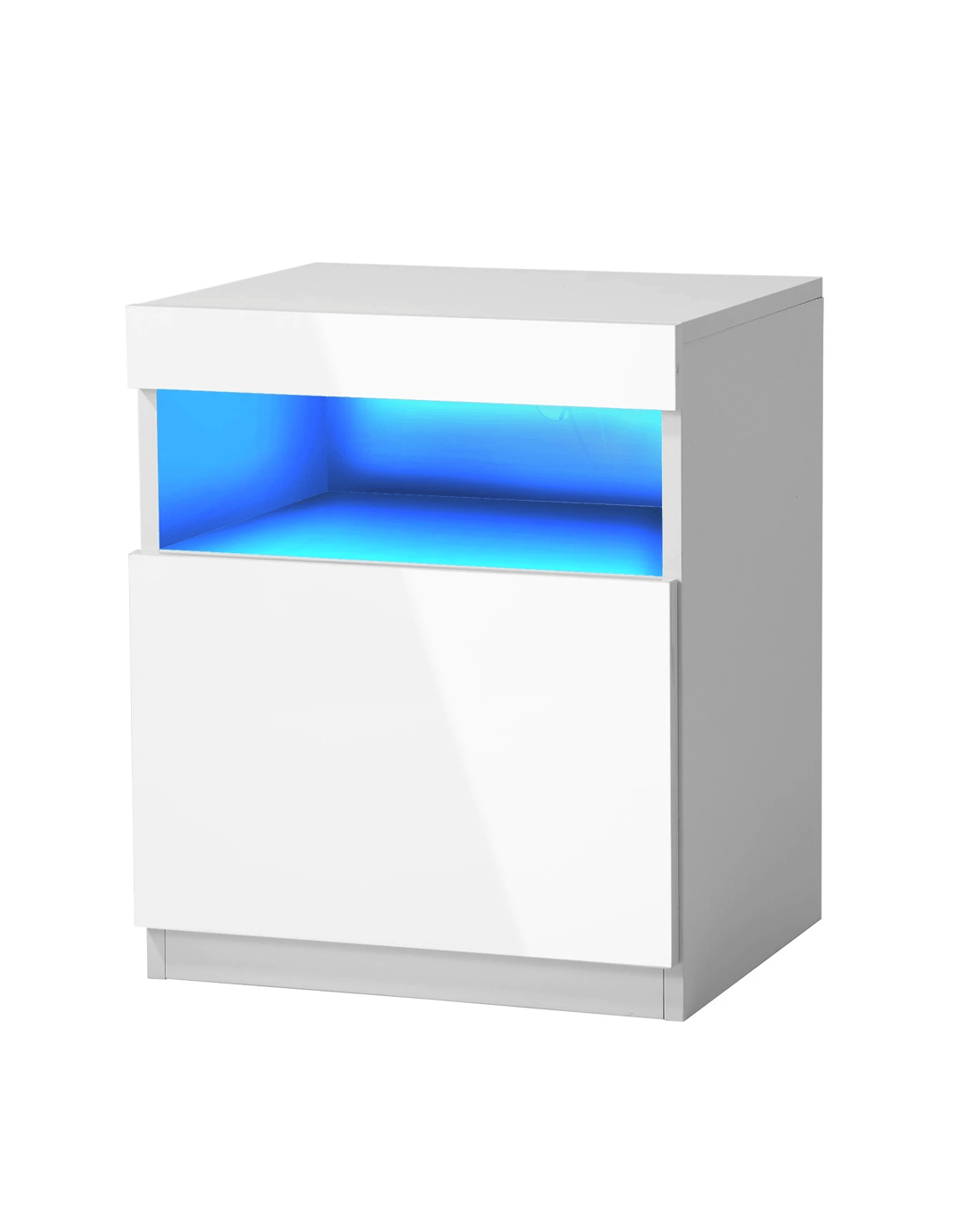 Sold by Kamprad's Oikos 1943Oikiture Bedside Table Led Nightstand Shelf Storage Cabinet - White