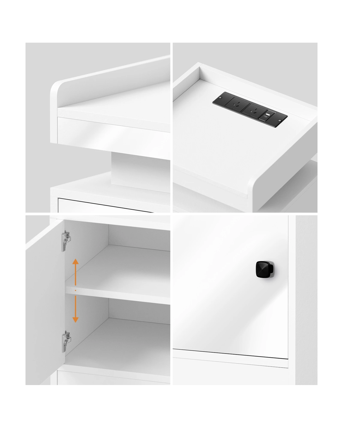 With its contemporary styling, our bedside table will sit well with any modern and eclectic home decor. Its versatile form and function are equally matched with an adjustable-shelf cabinet and ample space on top to display your bedroom essentials.