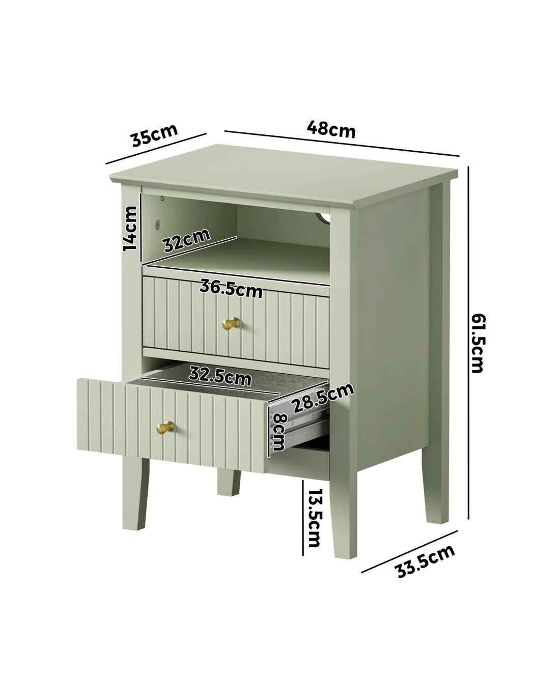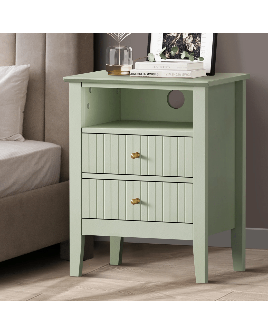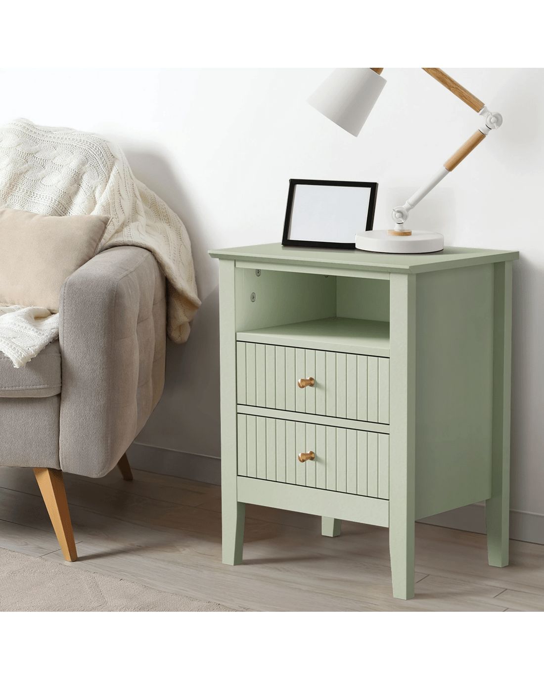 Sold by Kamprad's Oikos 1943Oikiture Bedside Table Nightstand 2 Drawer with Shelf Storage Cabinet - Green
