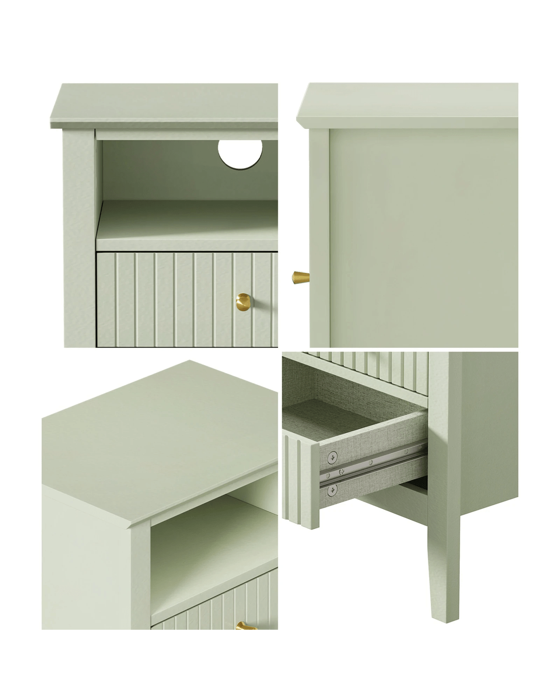 In terms of style, the bedside table has all the vibes of a cottage-inspired piece that stands out from the ordinary. Its eye-catching stripe textured drawer front is matched with attractive woodgrain finish throughout for stylish aesthetics. Loads of character and presence to add a rustic touch to your decor. The bedside table offers ample closed and opened storage whilst the brass handles make for easy opening and closing besides their aesthetic qualities.