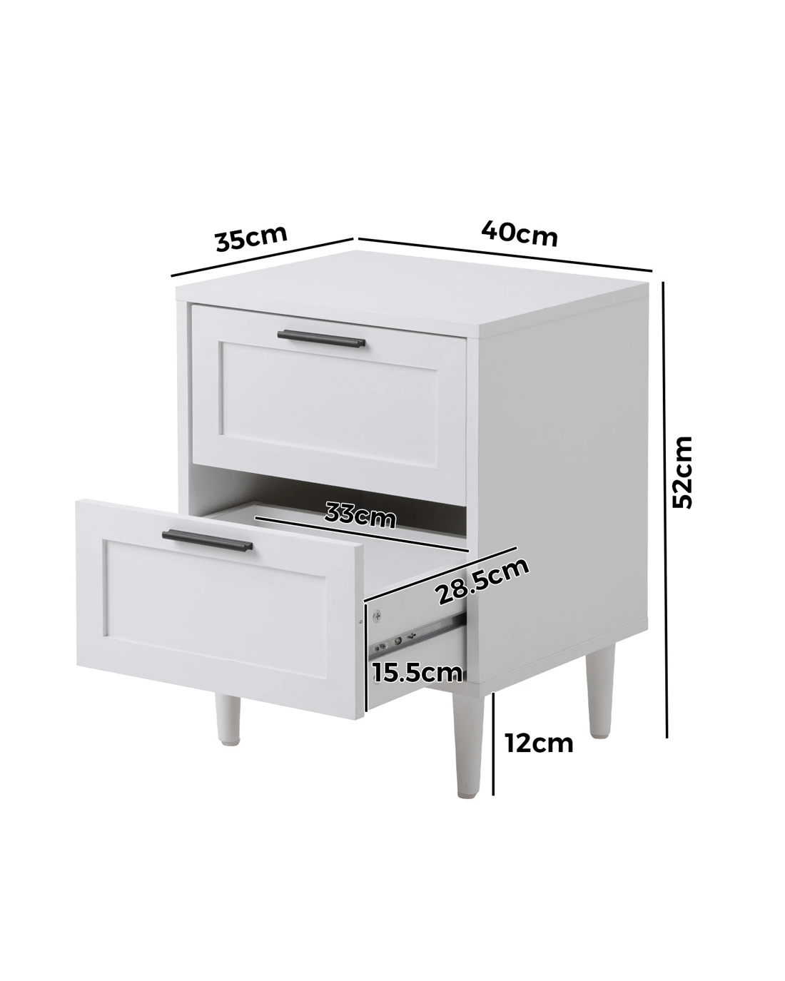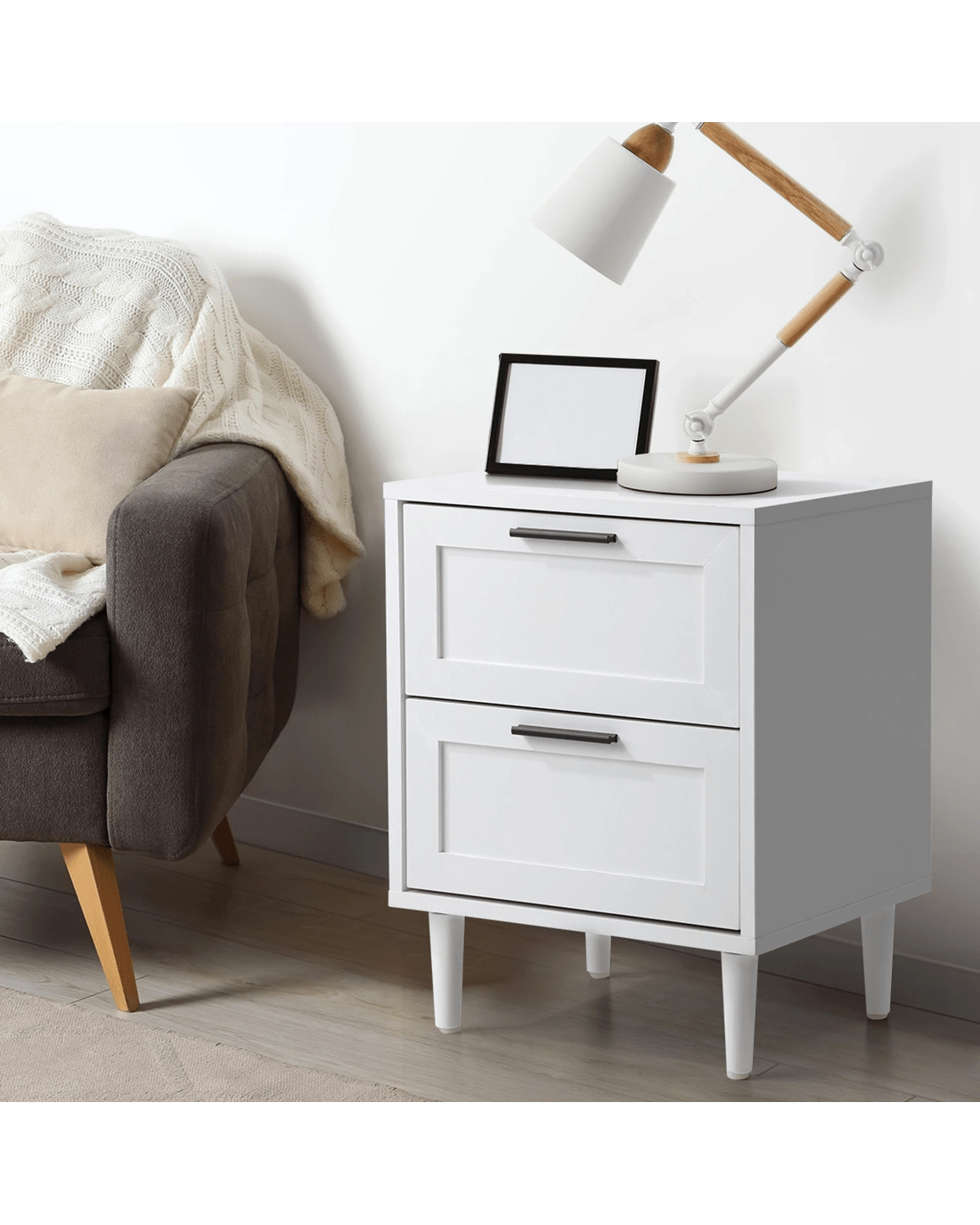 Sold by Kamprad's Oikos 1943Oikiture Bedside Table Nightstand 2 Drawers Side End Table Storage - White