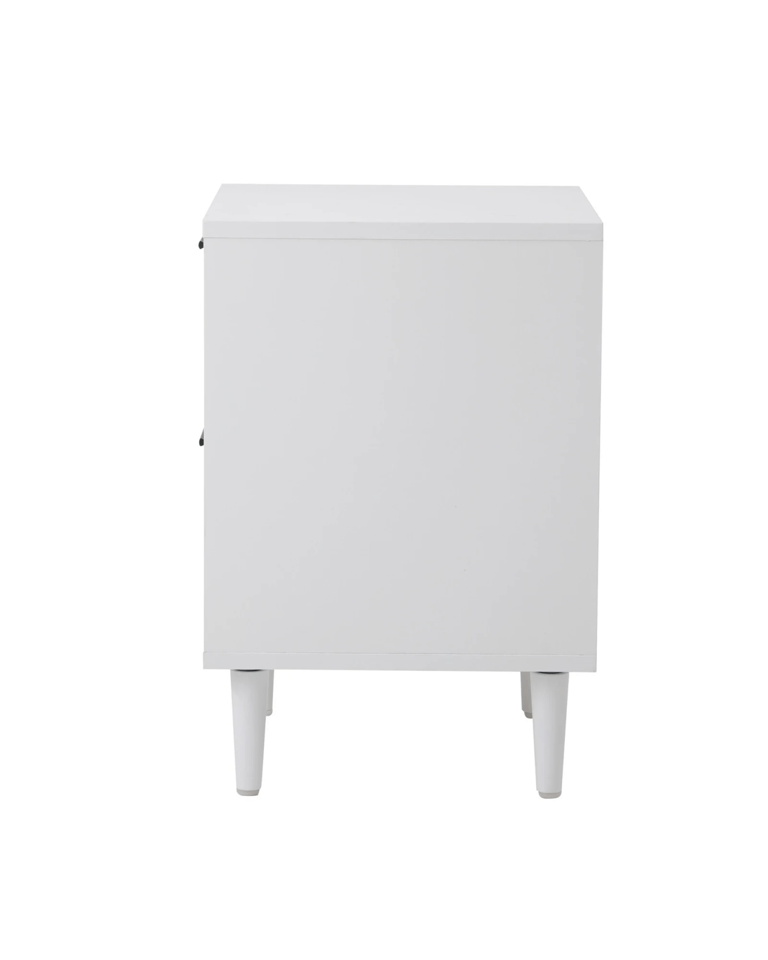 Featuring a wood blend finish with sculpted indents, the bedside table has all the vibes of a contemporary piece that transcends style and trends. The two drawers are blessed with ample space for all your bedroom essentials for convenient privacy.