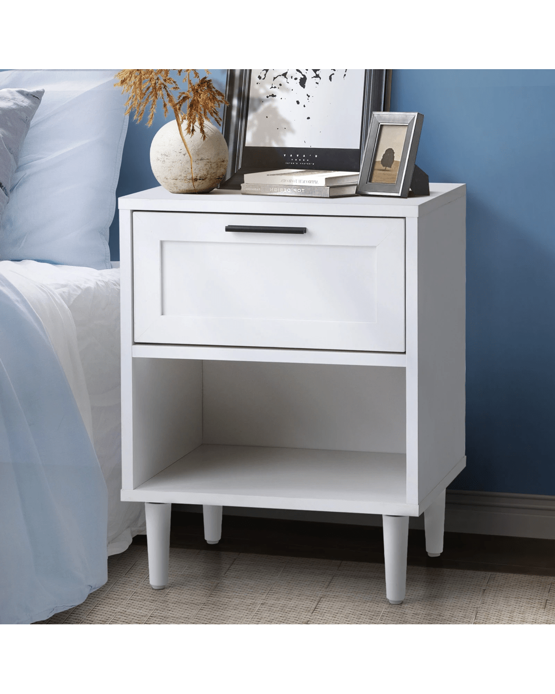 Sold by Kamprad's Oikos 1943Oikiture Bedside Table Nightstand Side End Table - White