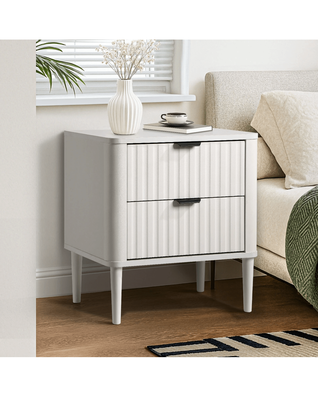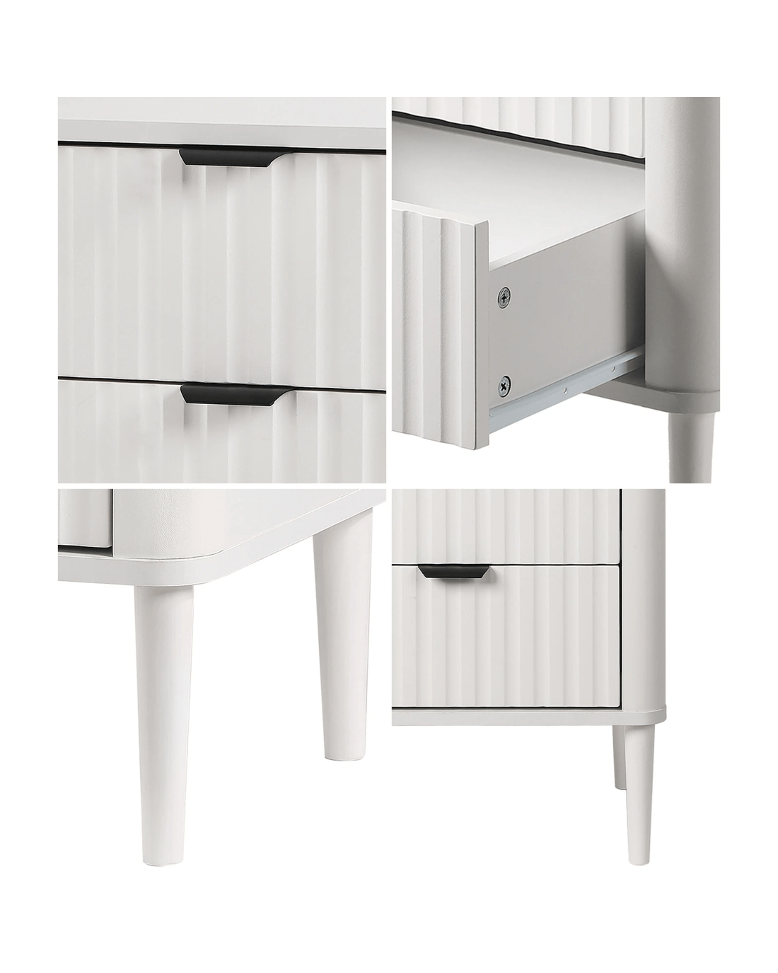 In terms of style, the bedside table has all the vibes of a post-modern piece that stands out from the ordinary. With character and presence to add chic touch to your d茅cor. The twin drawers, with lined textured fronts, are blessed with ample space whilst the matching stylish aluminium alloy handles make for easy opening and closing.