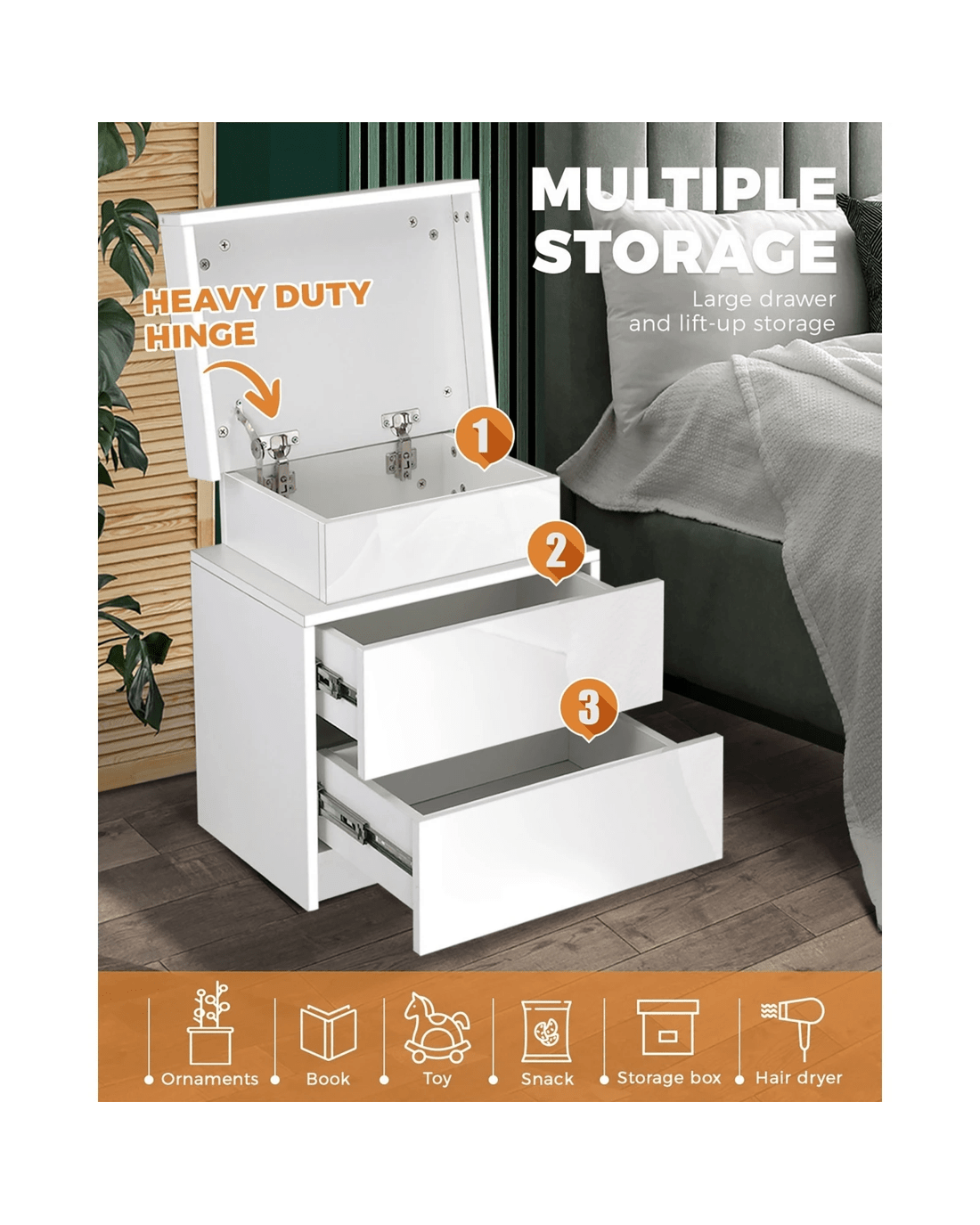 Made with quality materials for durability, our bedside tables provide adequate storage and display space with smooth operating drawers and stable supports. Better still, use the bedside table anywhere you fancy. Living room. Study. Garage. And with designs and finishes to suit your preferences, an Oikiture Bedside Table is always close to you in more ways than one.
