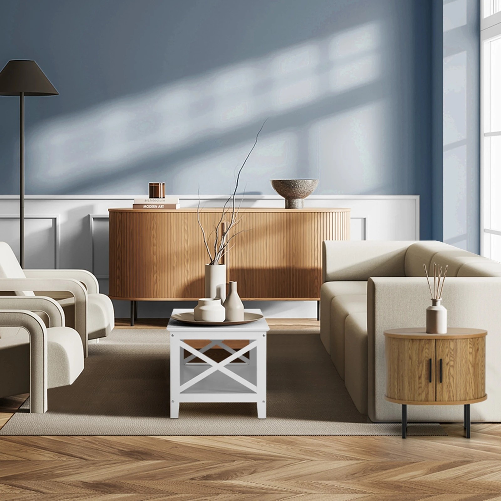 Oikiture Bedside Table Side End Tables 2-tier Storage Cabinet - Natural