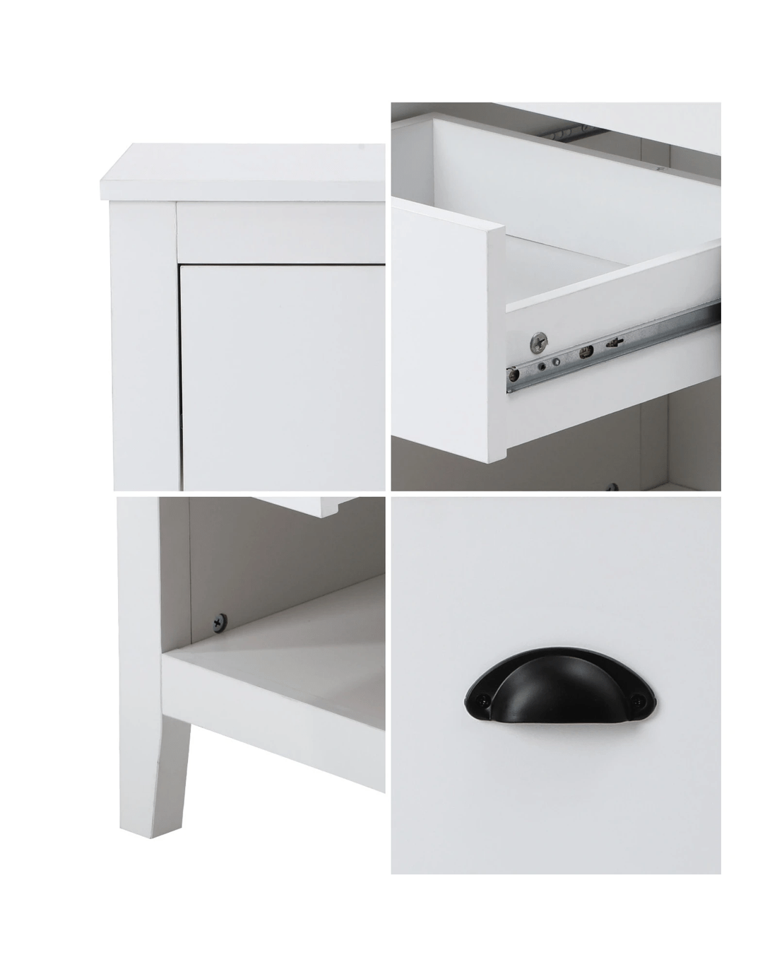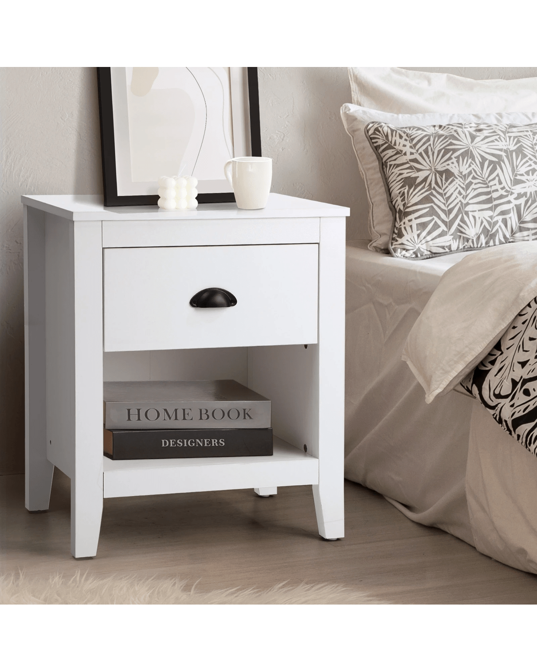 Oikiture Bedside Table Side End Tables Nightstand Vintage - White