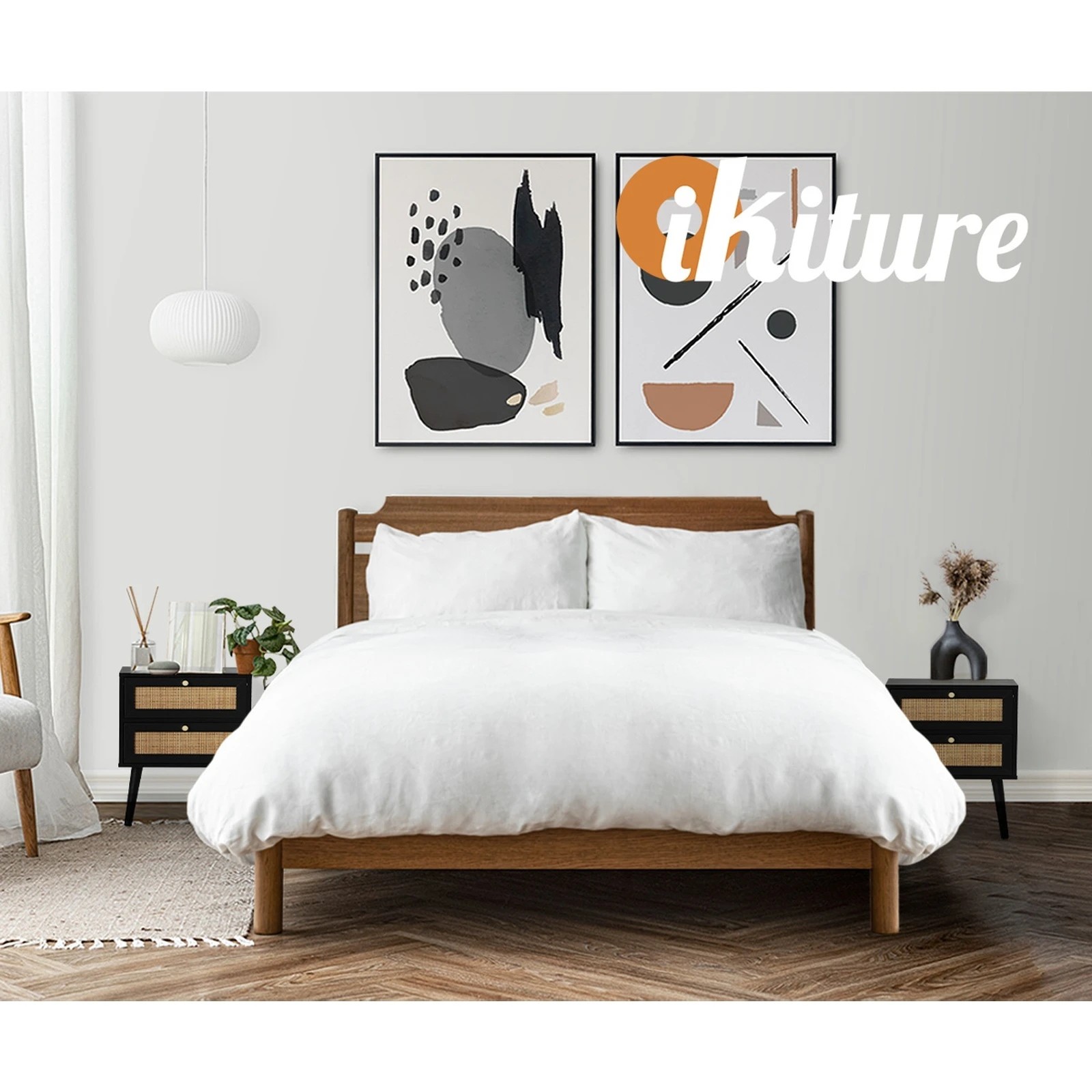 Oikiture Bedside Table Side Table 2 Drawers Nightstand Rattan - Black