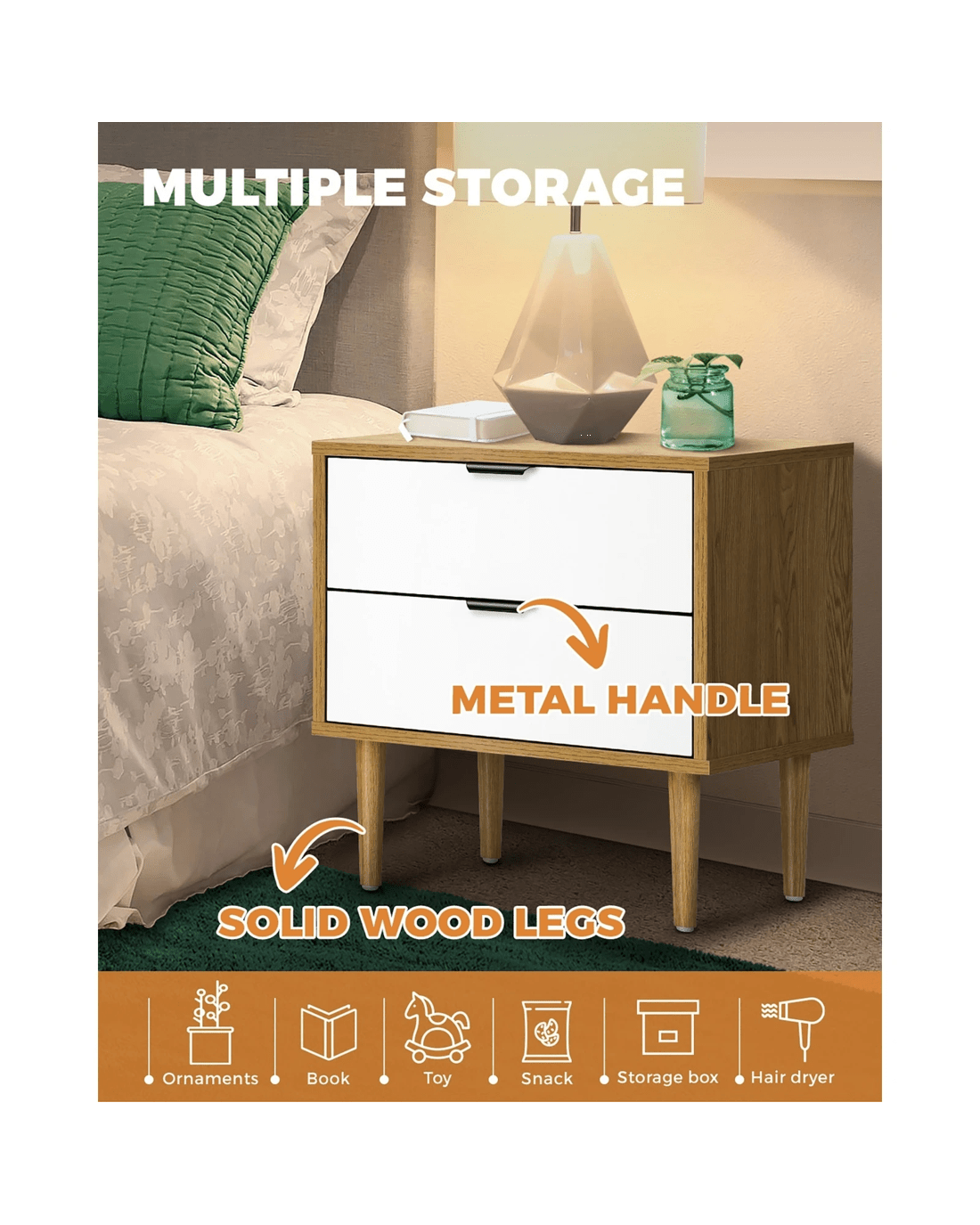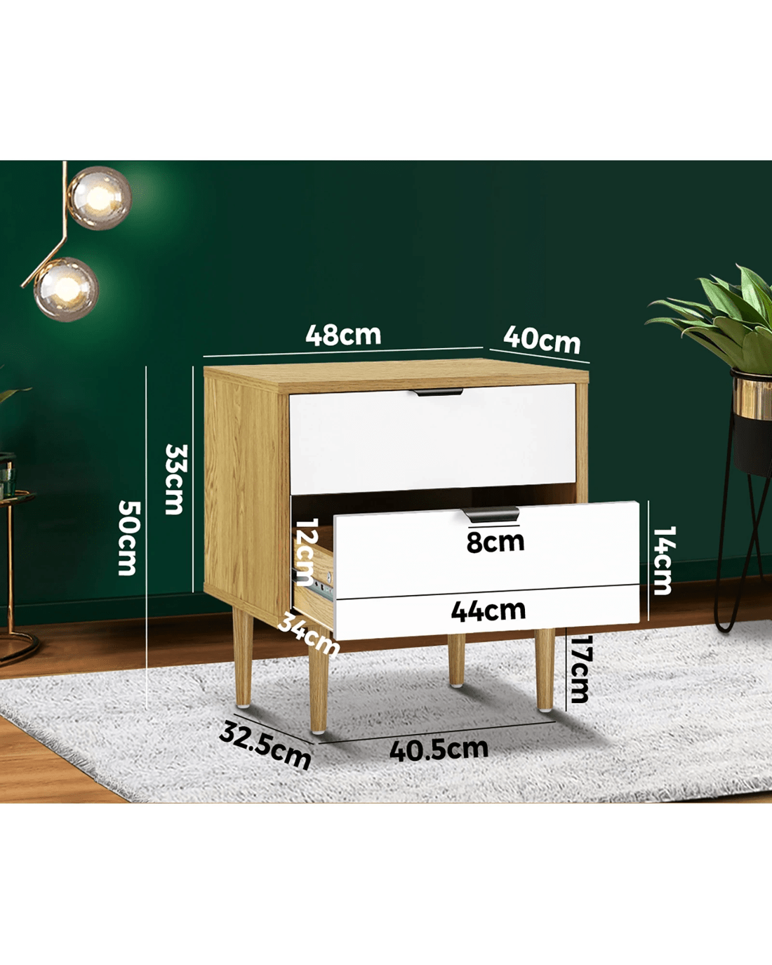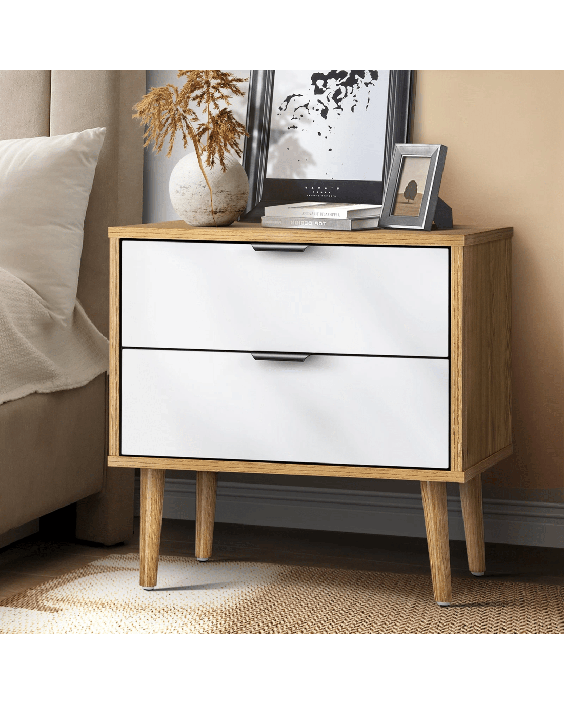 Sold by Kamprad's Oikos 1943Oikiture Bedside Tables 2 Drawers Side Table Nightstand - Multi