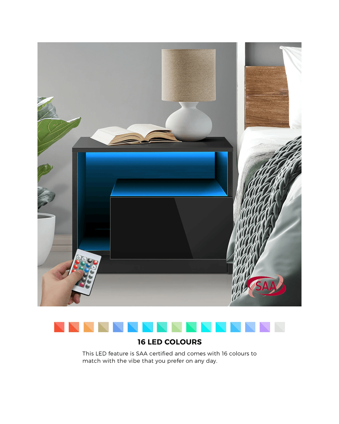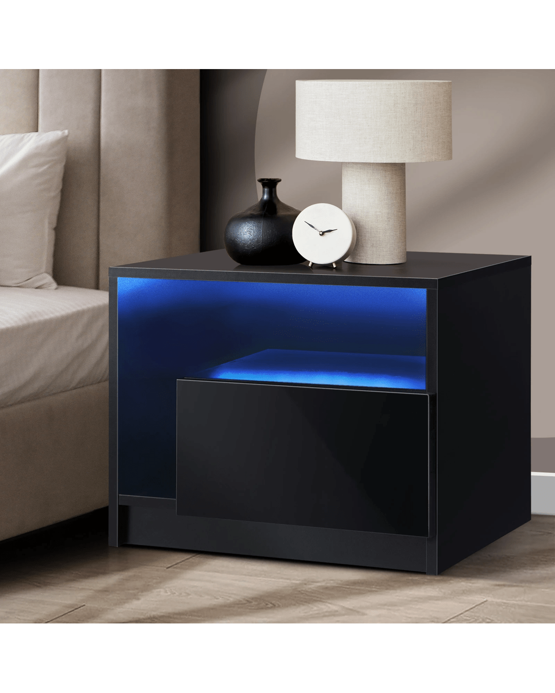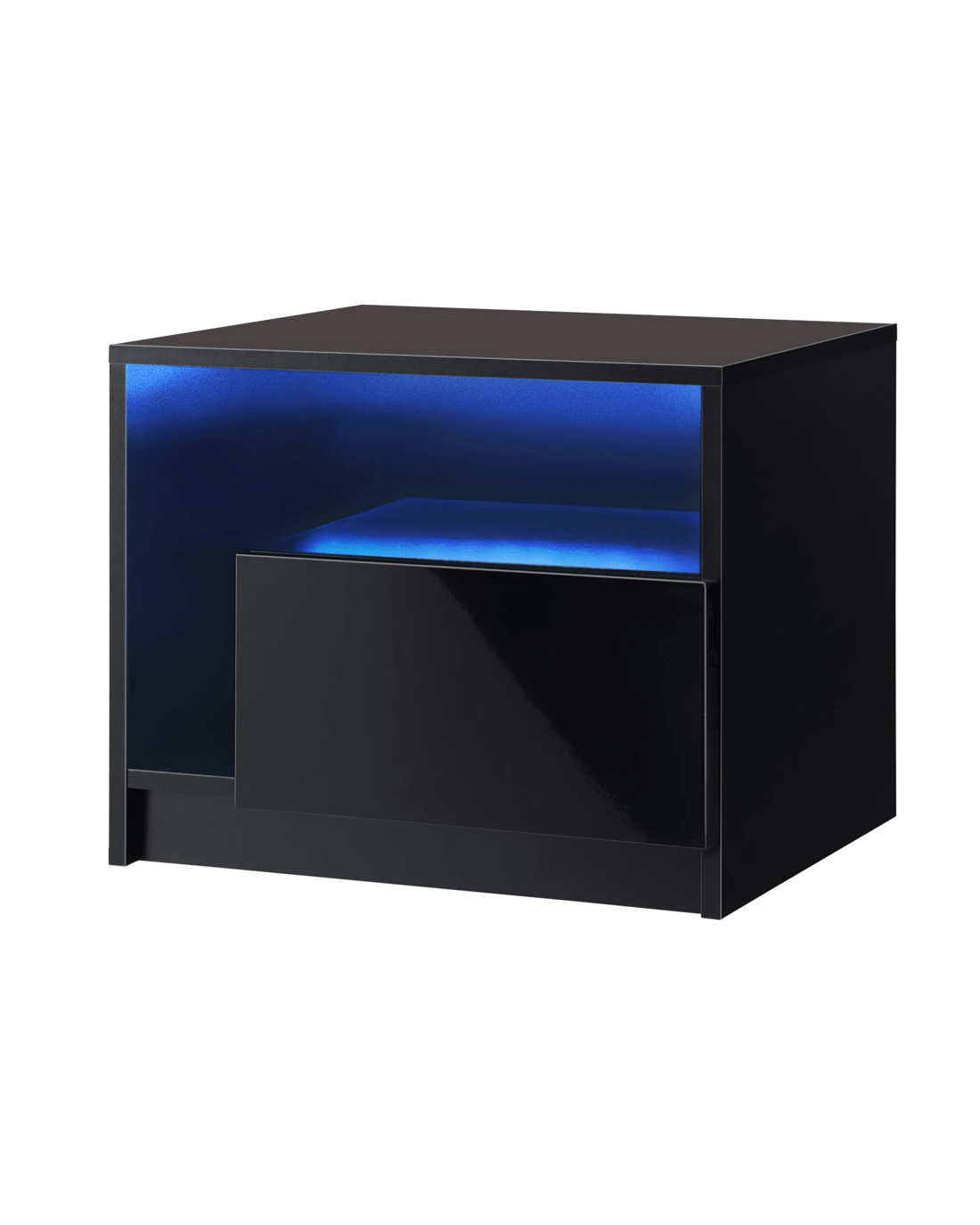 Sold by Kamprad's Oikos 1943Oikiture Bedside Tables Rgb Led Drawers High Gloss Nightstand - Black