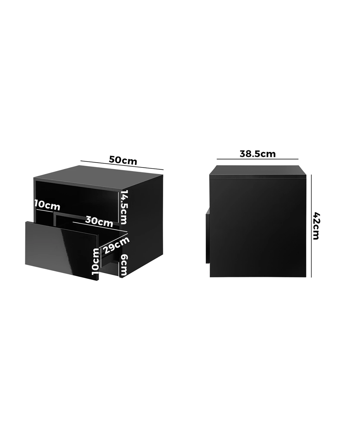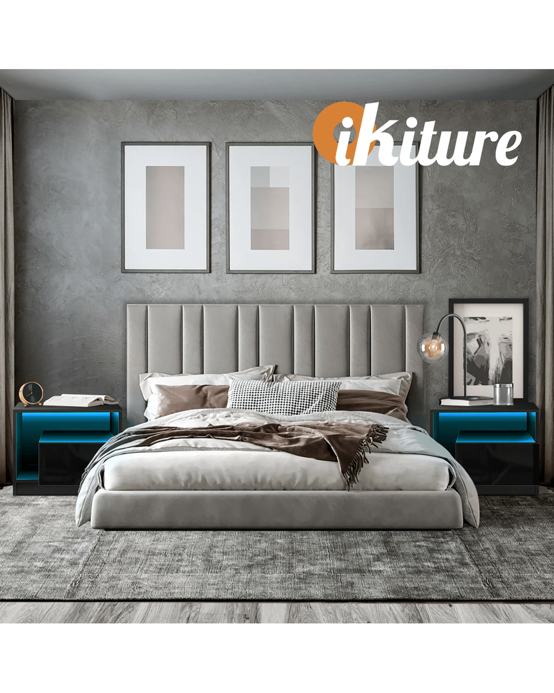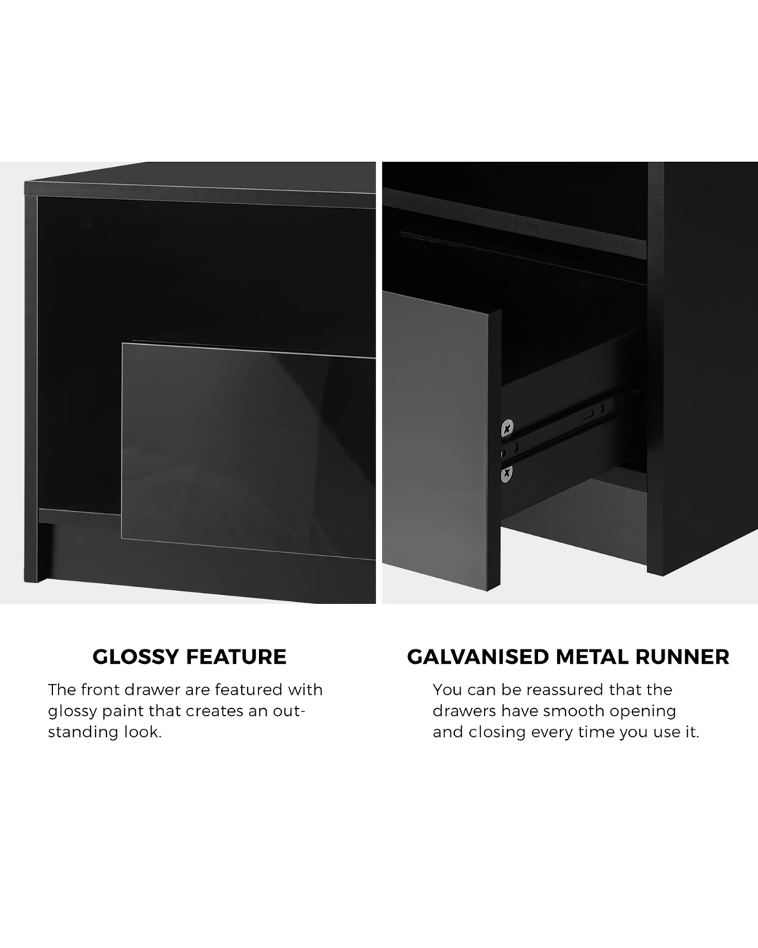 Sold by Kamprad's Oikos 1943Oikiture Bedside Tables Rgb Led Drawers High Gloss Nightstand - Black