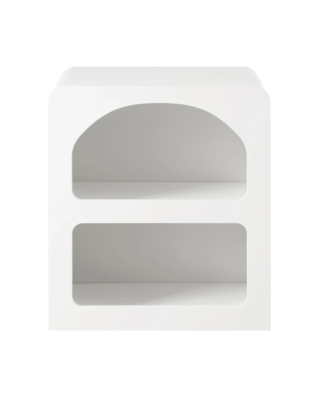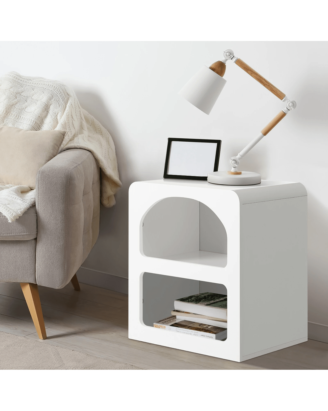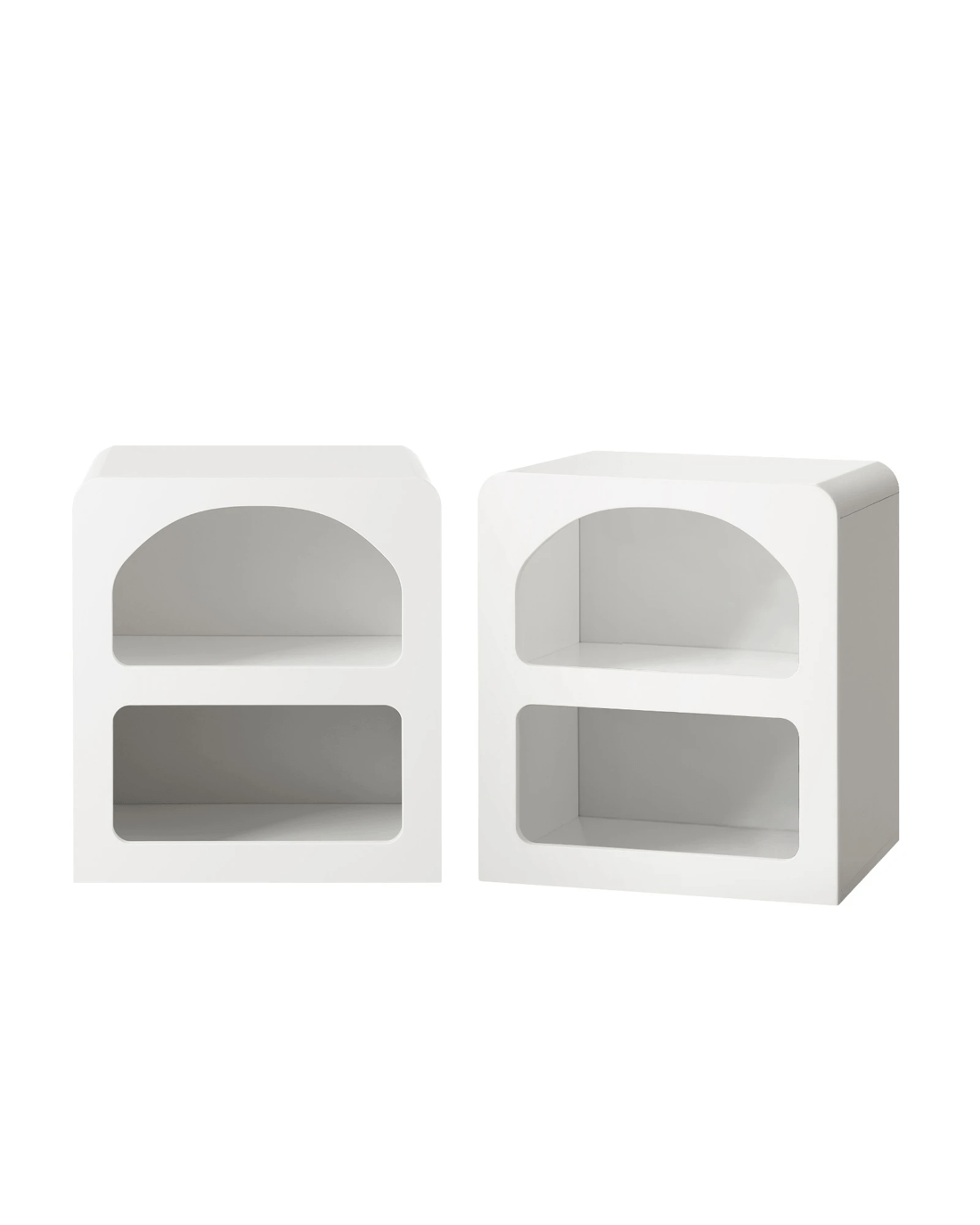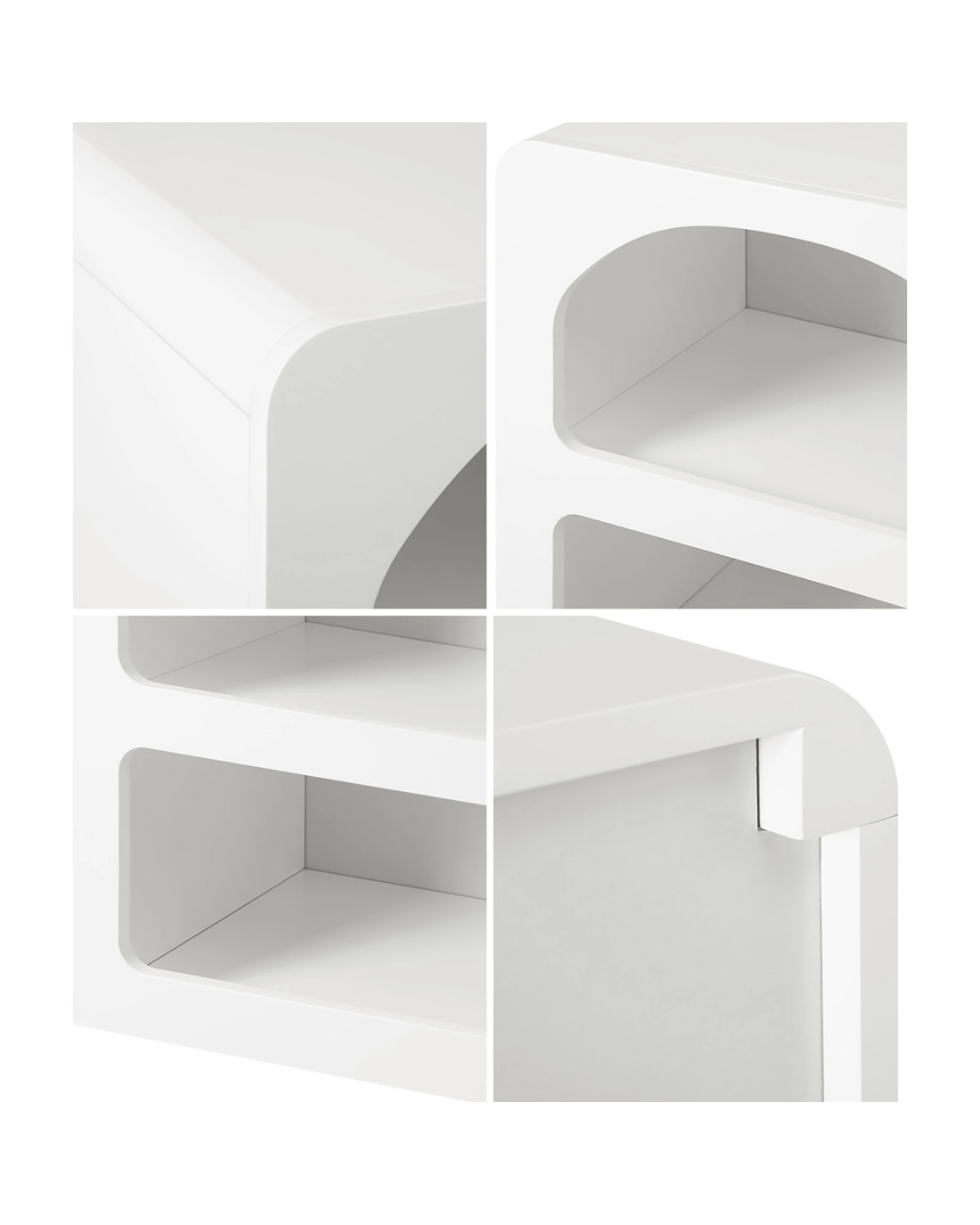 Crafted with meticulous attention to detail, the white finish exudes timeless charm and complements a variety of bedroom decors. The inner curved design not only adds a subtle, artistic flair but also offers a practical surface for your nighttime essentials like books, reading glasses, or a cup of soothing tea.
