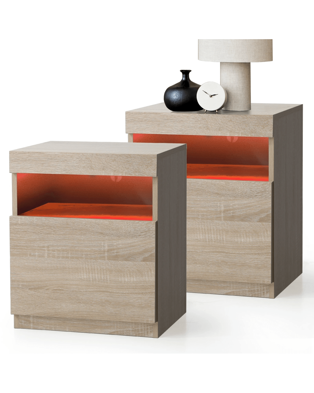 Sold by Kamprad's Oikos 1943Oikiture Bedside Tables Set of 2 LED Nightstand Shelf Side End Table - Natural