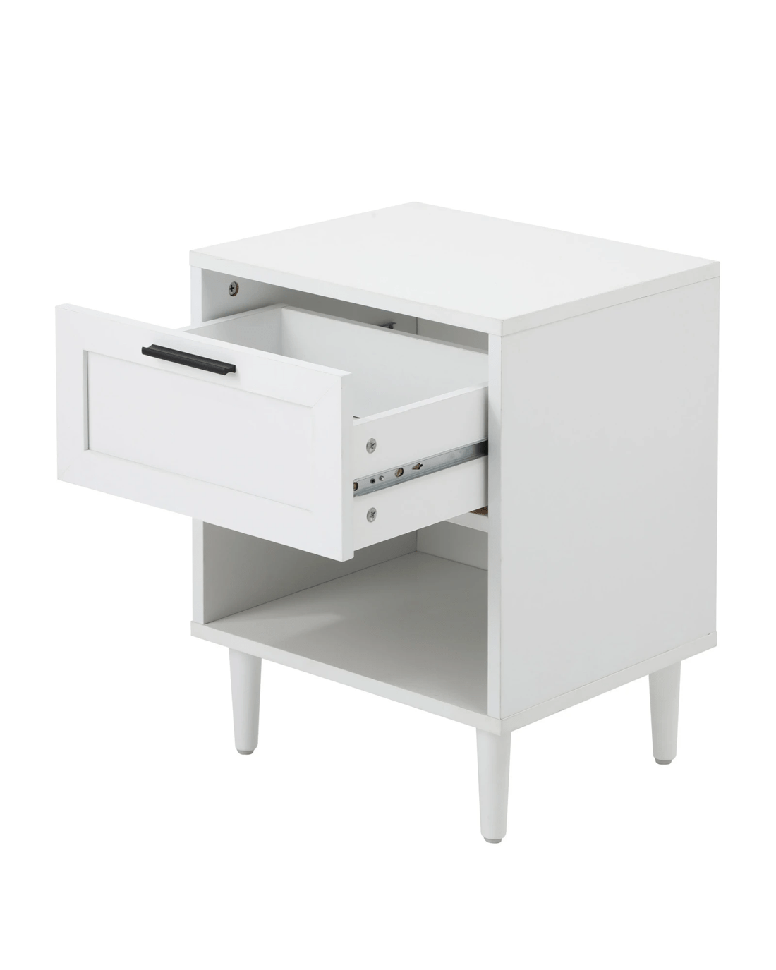 Featuring a wood blend finish with sculpted indents, the bedside table has all the vibes of a contemporary piece that transcends style and trends. The single drawer is blessed with ample space whilst the open shelf below provides additional storage real estate for frequently used or accessed items.