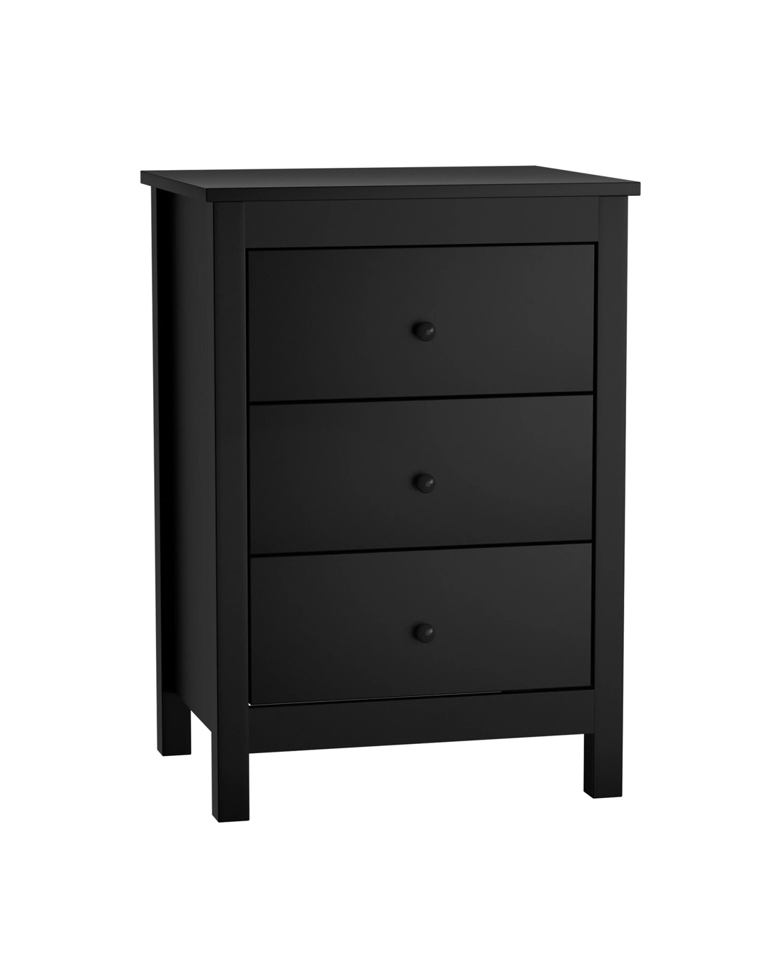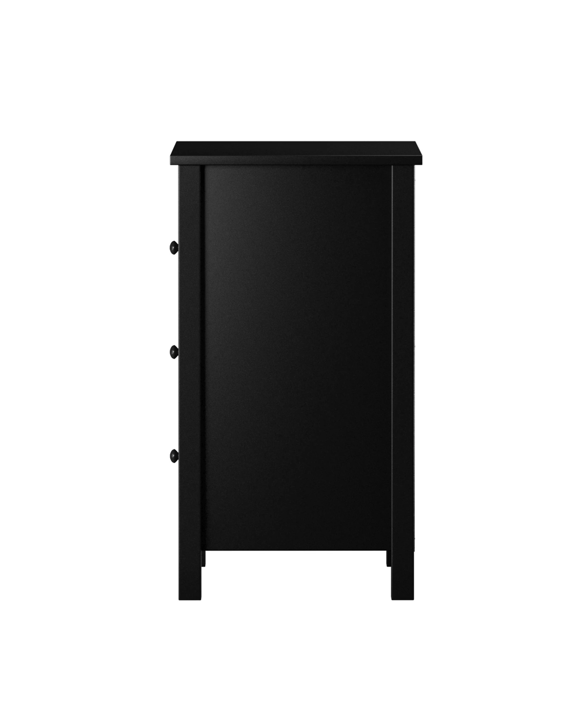 Crafted with attention to detail, the clean lines and minimalist design of this bedside table create a contemporary and timeless look. The three drawers offer ample space for stowing away nighttime essentials, keeping your bedside area organized and clutter-free. The classic black knobs add a subtle contrast, contributing to the overall charm of the piece.