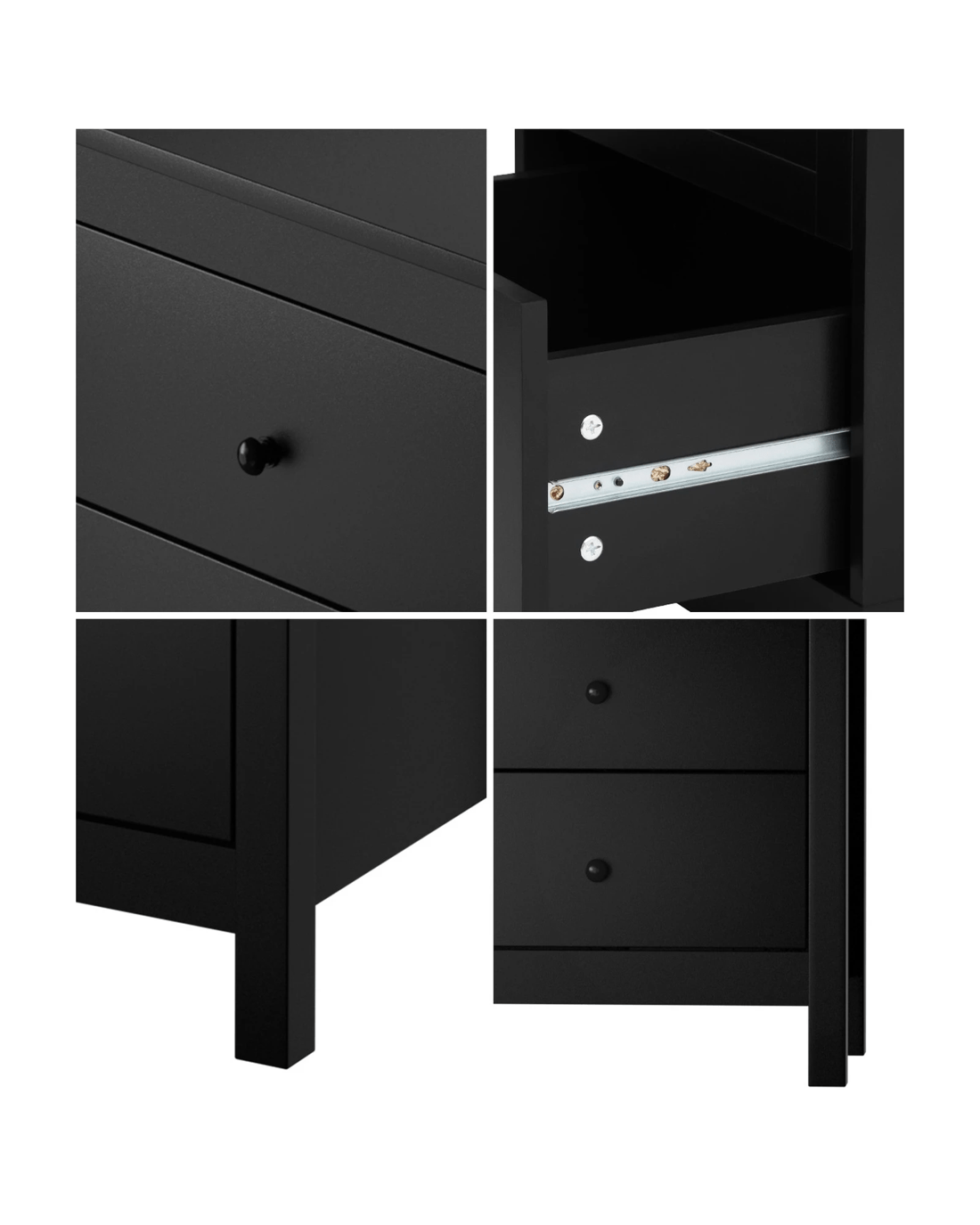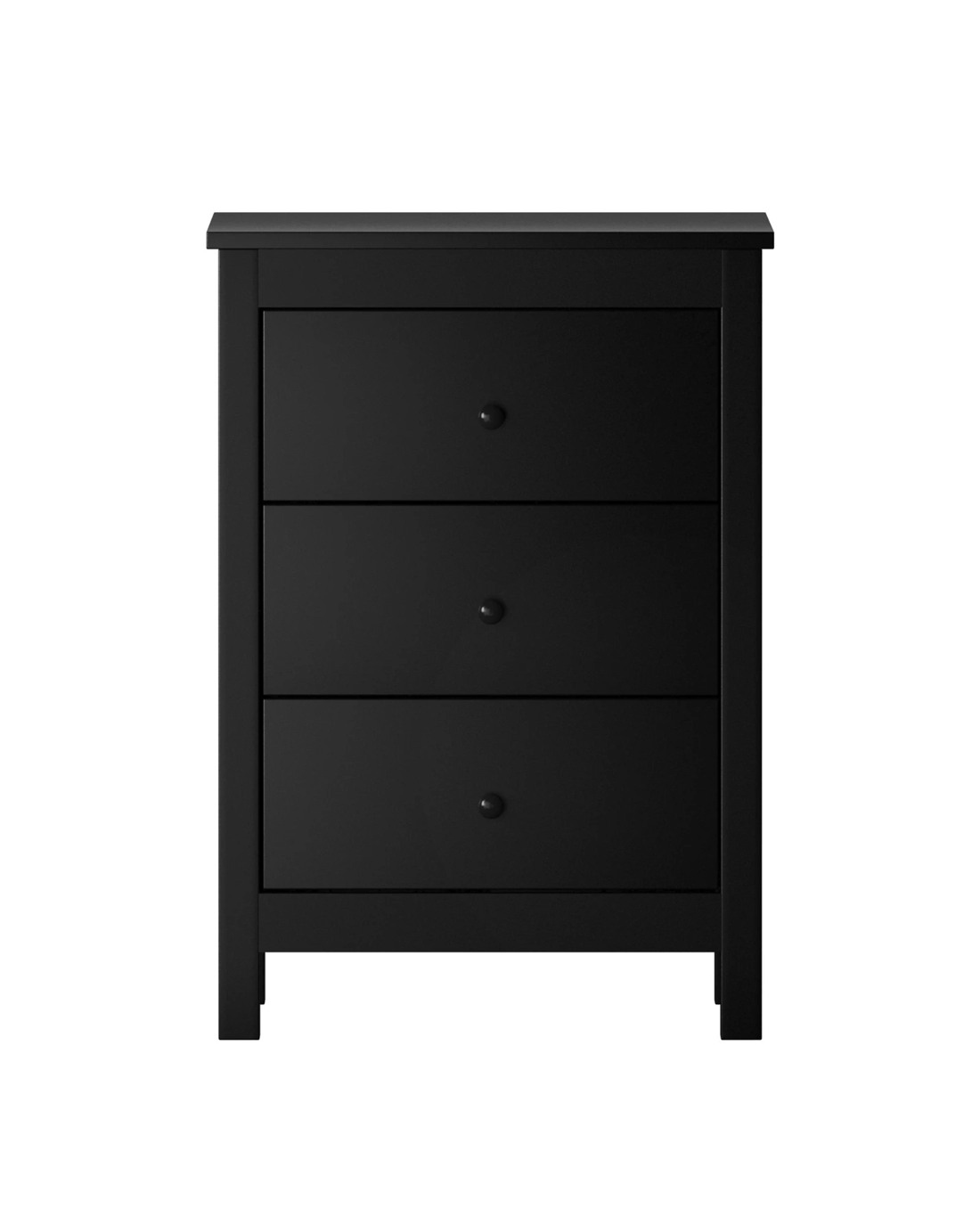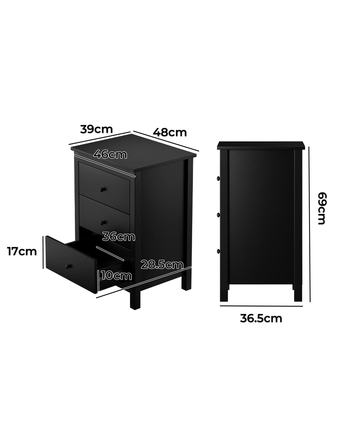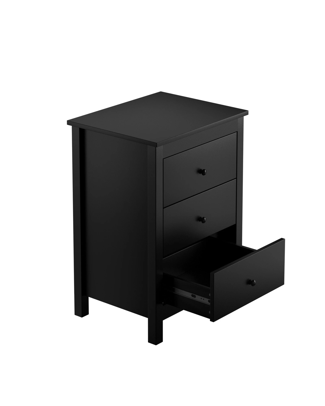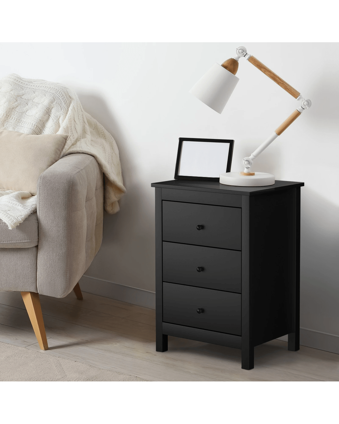 Introducing our newly launched bedside table by Oikiture - a chic and functional addition to enhance your bedroom decor. This stylish bedside companion features a pristine black finish that effortlessly complements any interior aesthetic. With three drawers adorned with elegant black knobs, this bedside table not only provides convenient storage but also adds a touch of sophistication to your bedside essentials.