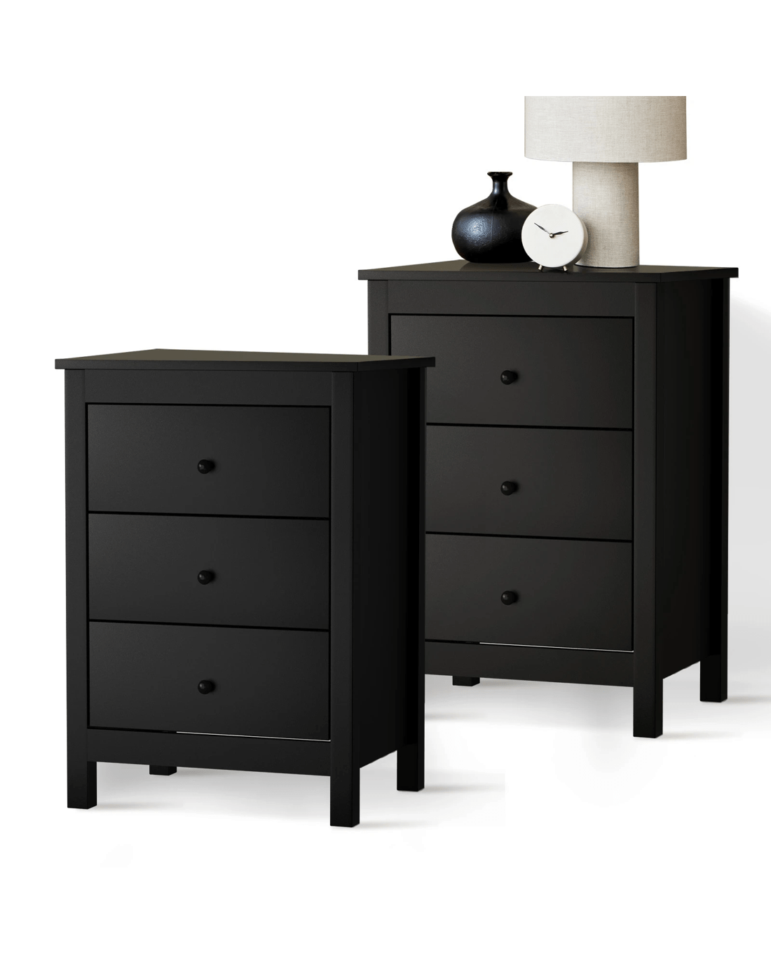 Sold by Kamprad's Oikos 1943Oikiture Bedside Tables Set of 2 Nightstands Storage Cabinet 3 Drawers - Black