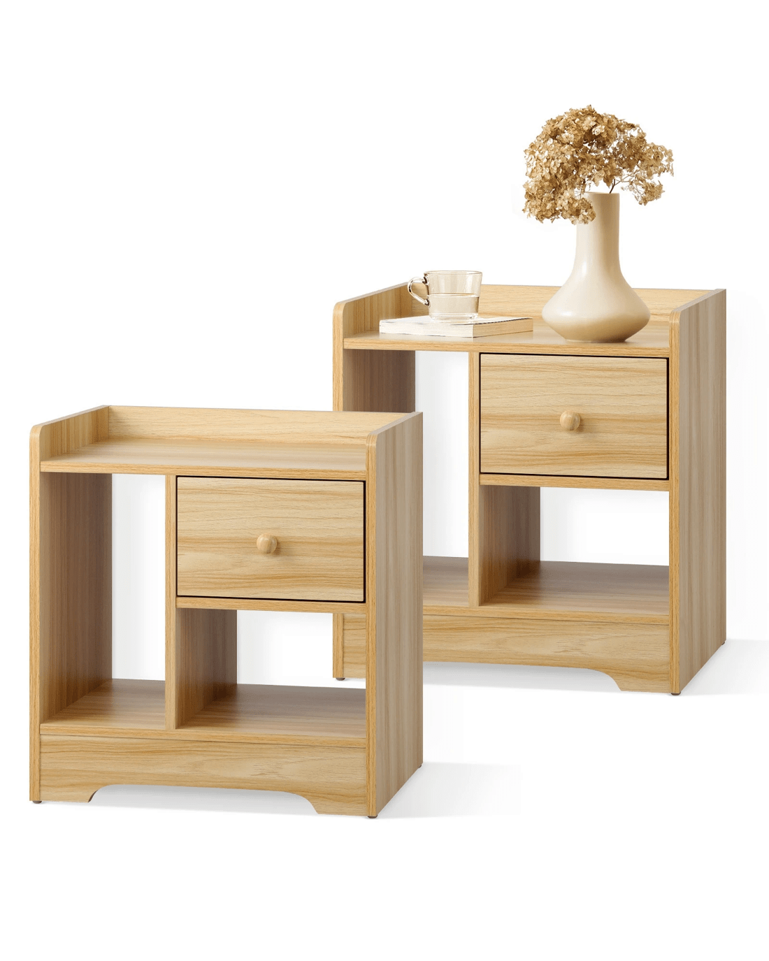 Sold by Kamprad's Oikos 1943Oikiture Bedside Tables Set of 2 Side Table Nightstand Storage Shelf - Natural