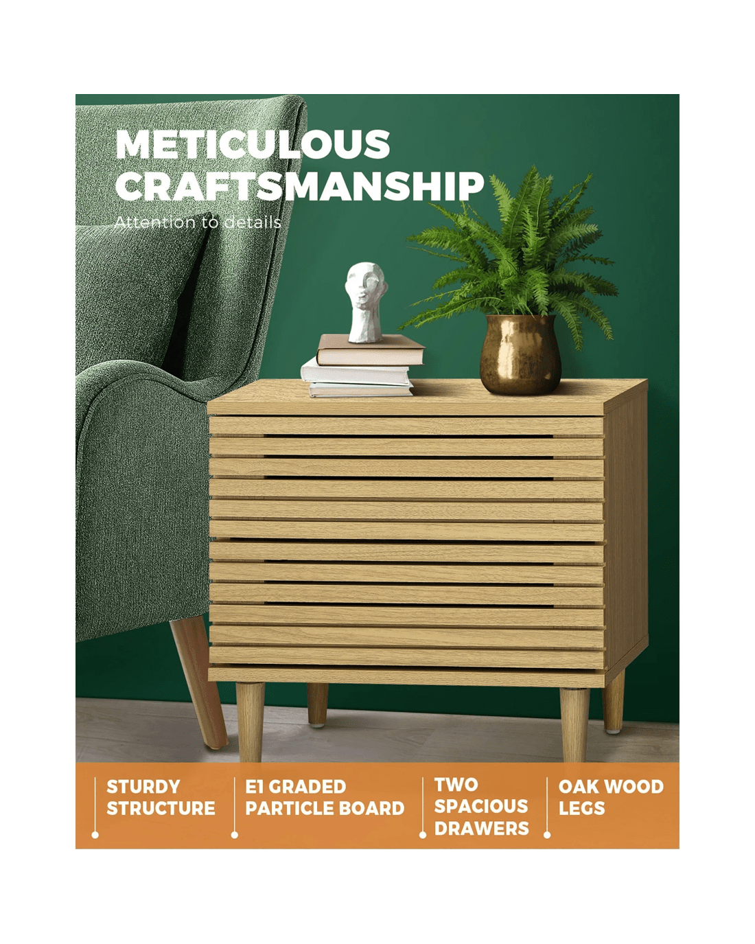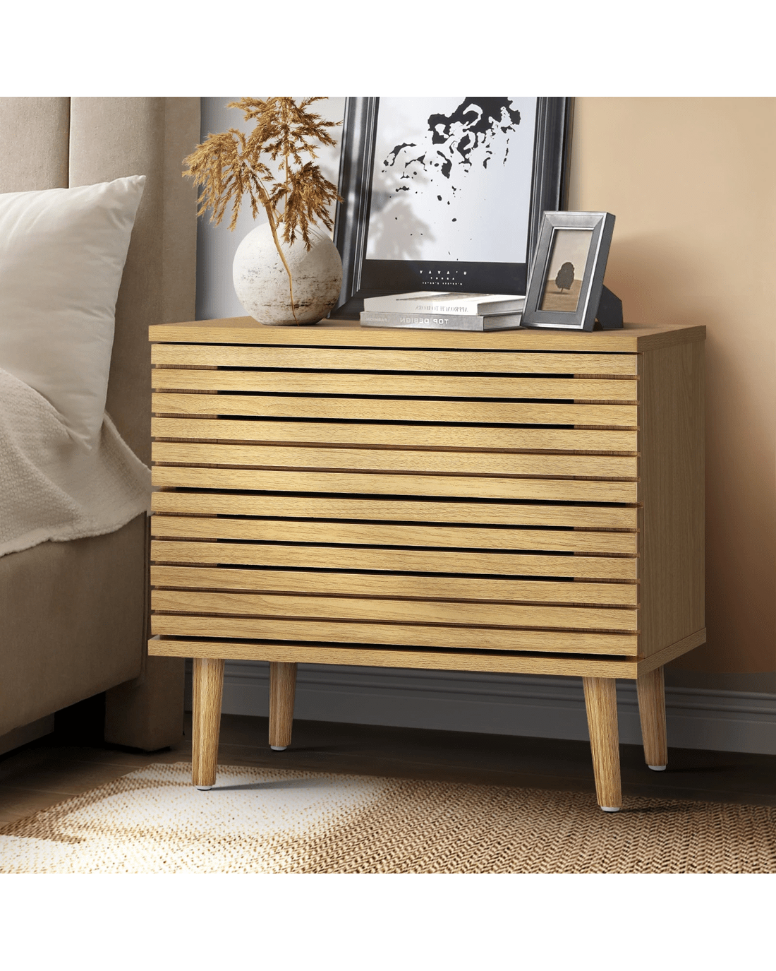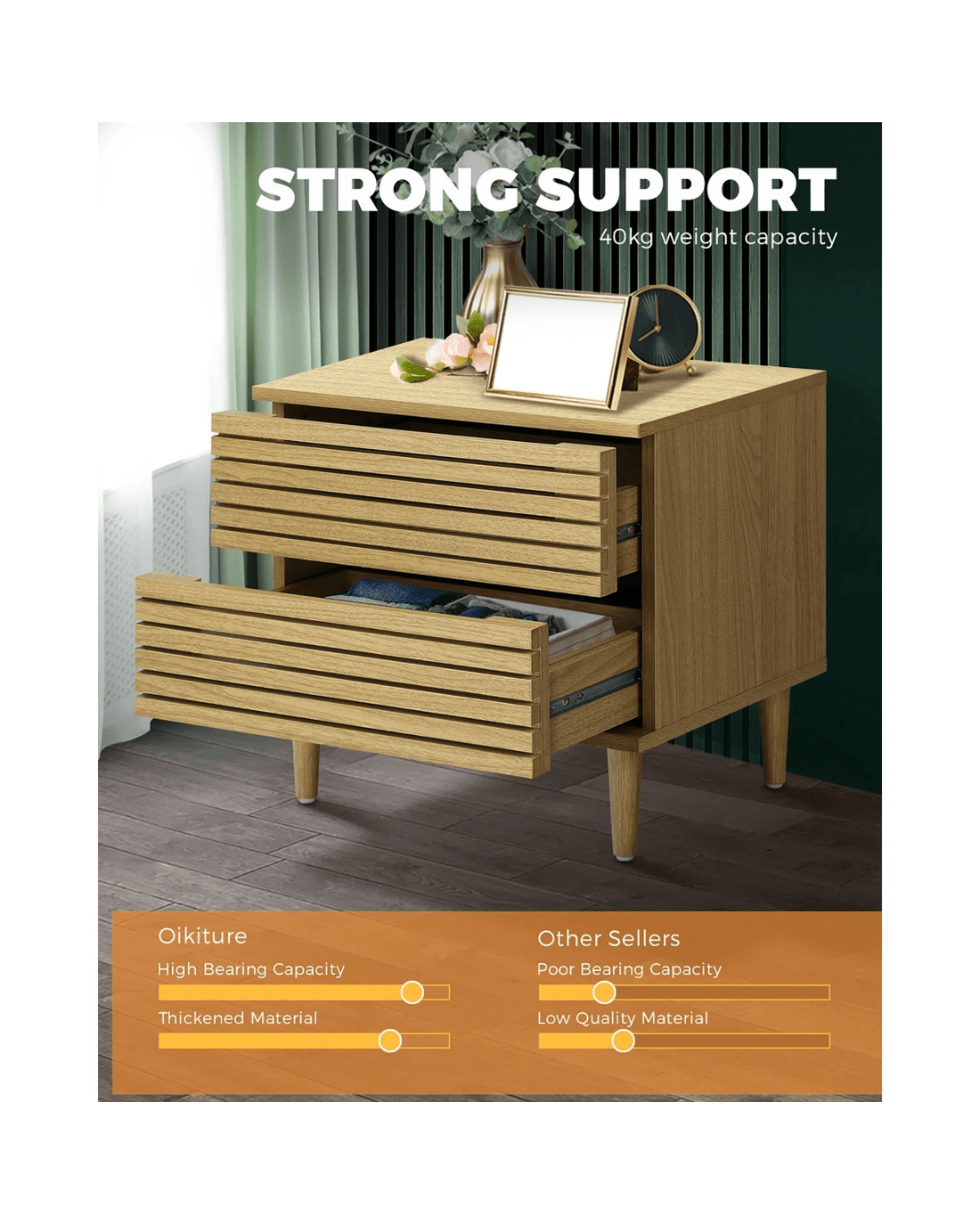 Oikiture Bedside Tables Side Table 2 Drawers Bedroom Storage Cabinet - Natural