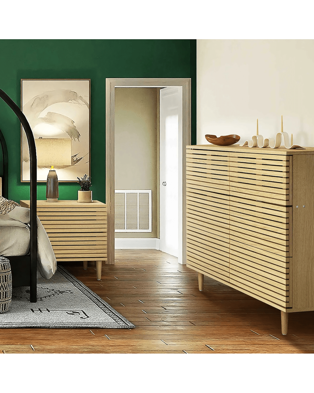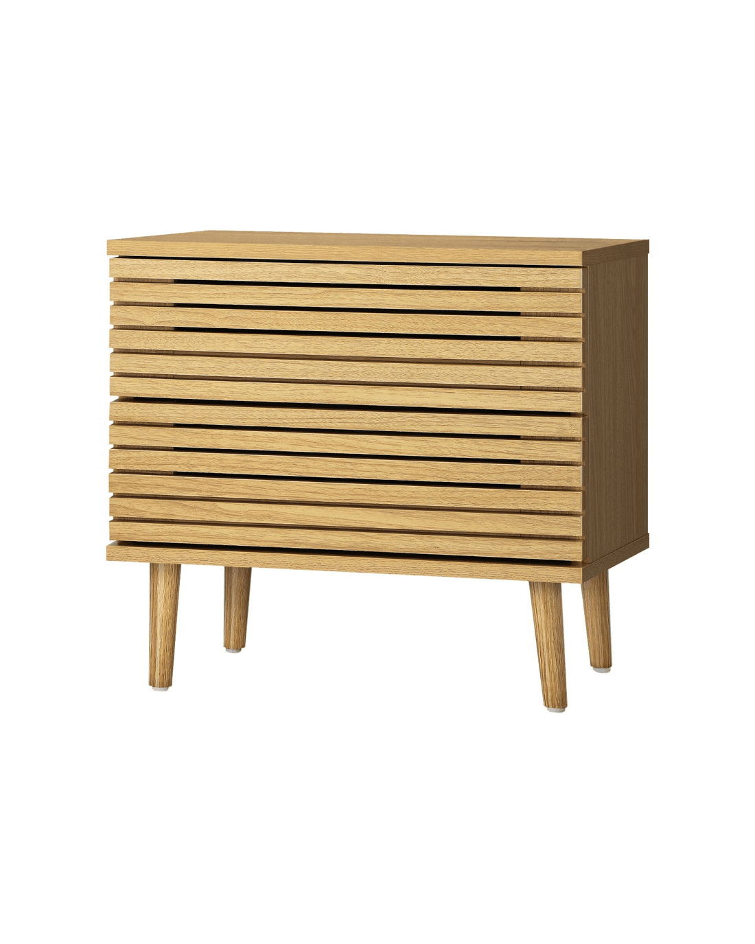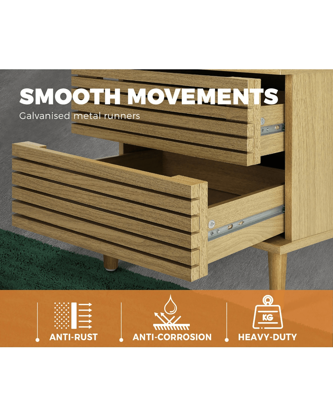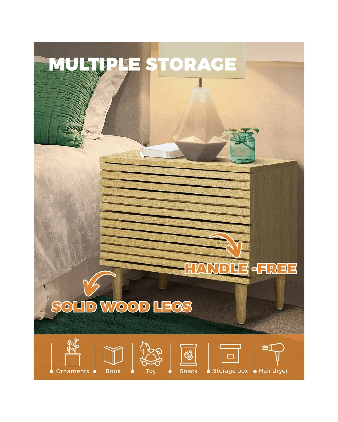 Oikiture Bedside Tables Side Table 2 Drawers Bedroom Storage Cabinet - Natural