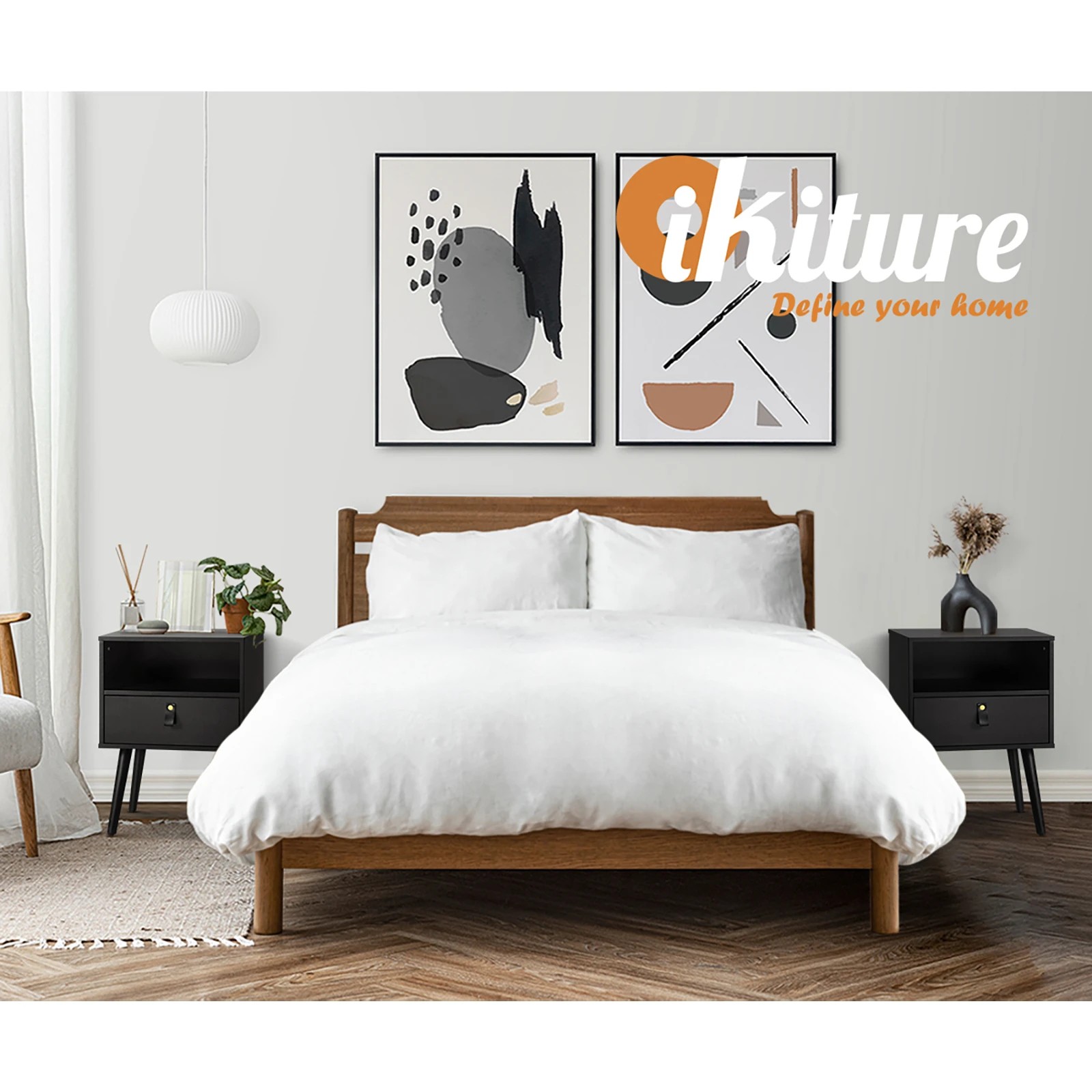 Oikiture Bedside Tables Side Table Storage Cabinet Leather Handle - Black