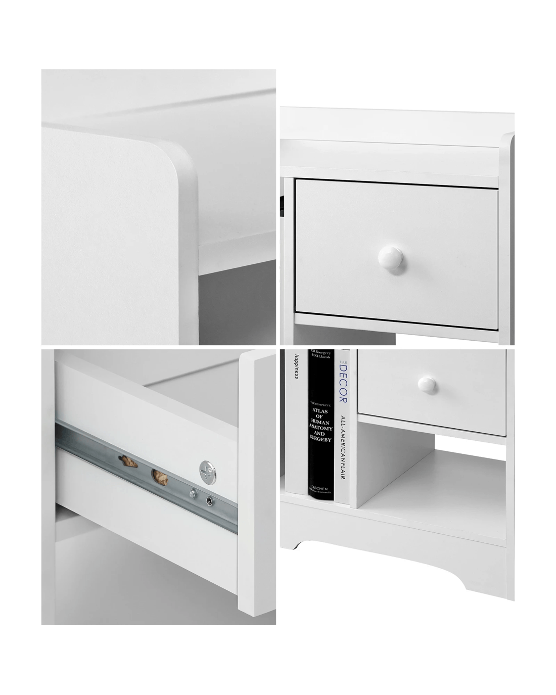 Sold by Kamprad's Oikos 1943Oikiture Bedside Tables Side Table White Nightstand Storage Drawer Shelf - White