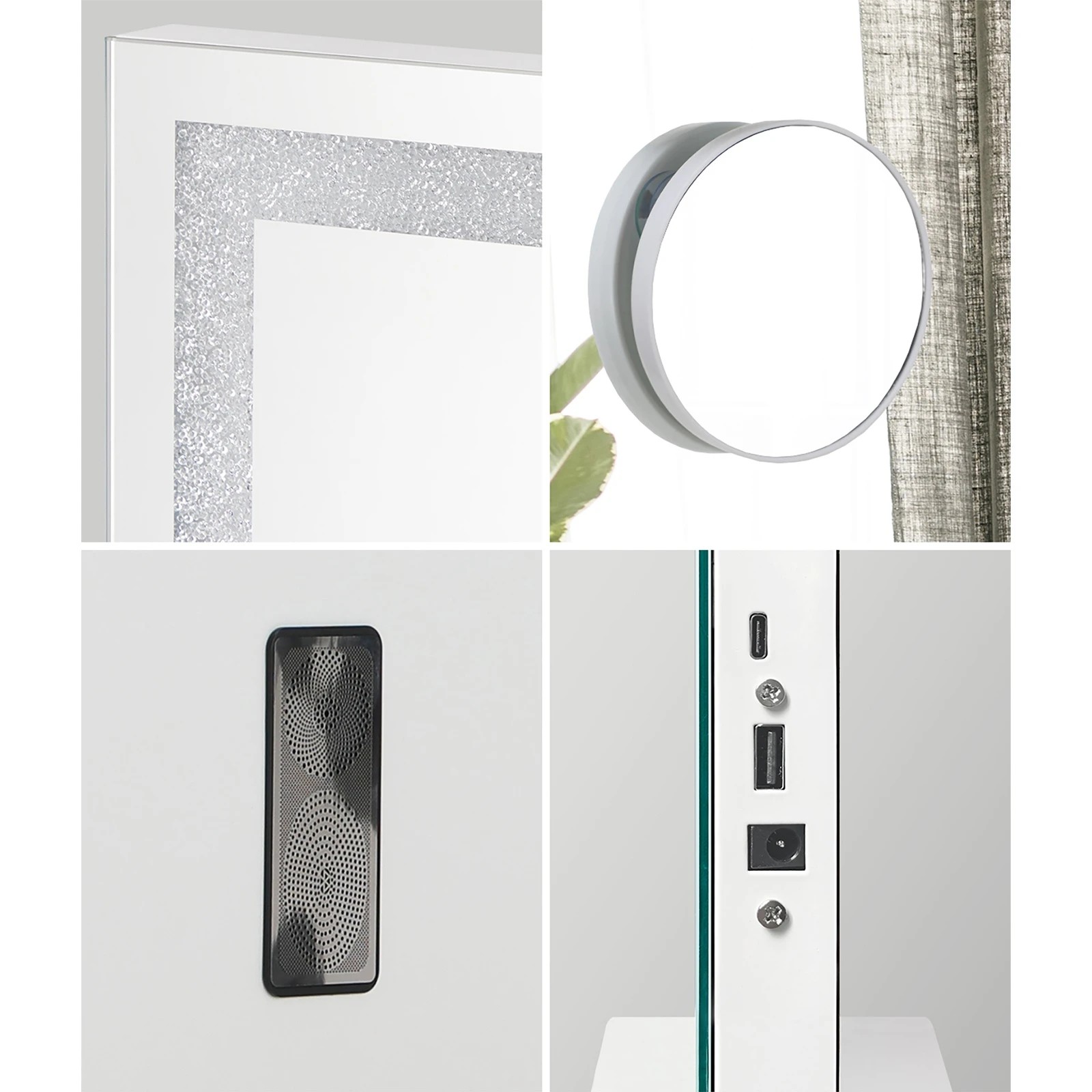 Oikiture Bluetooth Hollywood Led Makeup Mirror 58x49cm Crystal Vanity Mirrors - White