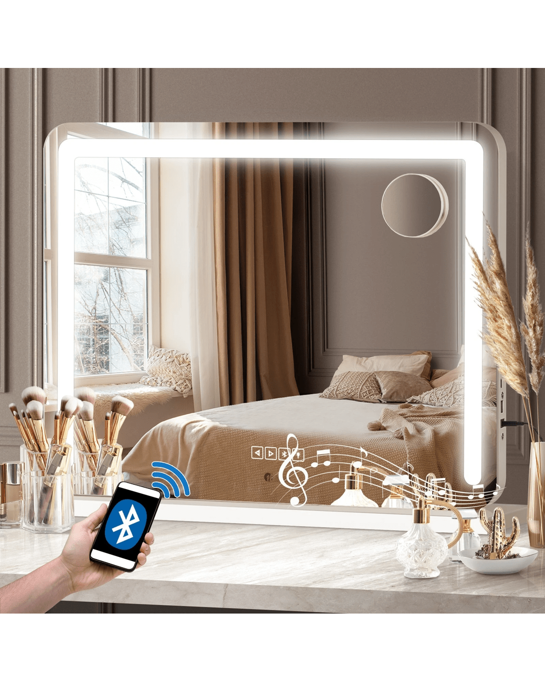 Music to go with your mood? Easy does it with the makeup mirror's Bluetooth feature with a memory function. Just pair the smart makeup mirror with your smartphone and listen to your heart's content to all your favourite tunes while dolling up. Better still, you don't even need to use your smartphone to control the music. Just do it directly with the touch control on the makeup mirror. How good is that!