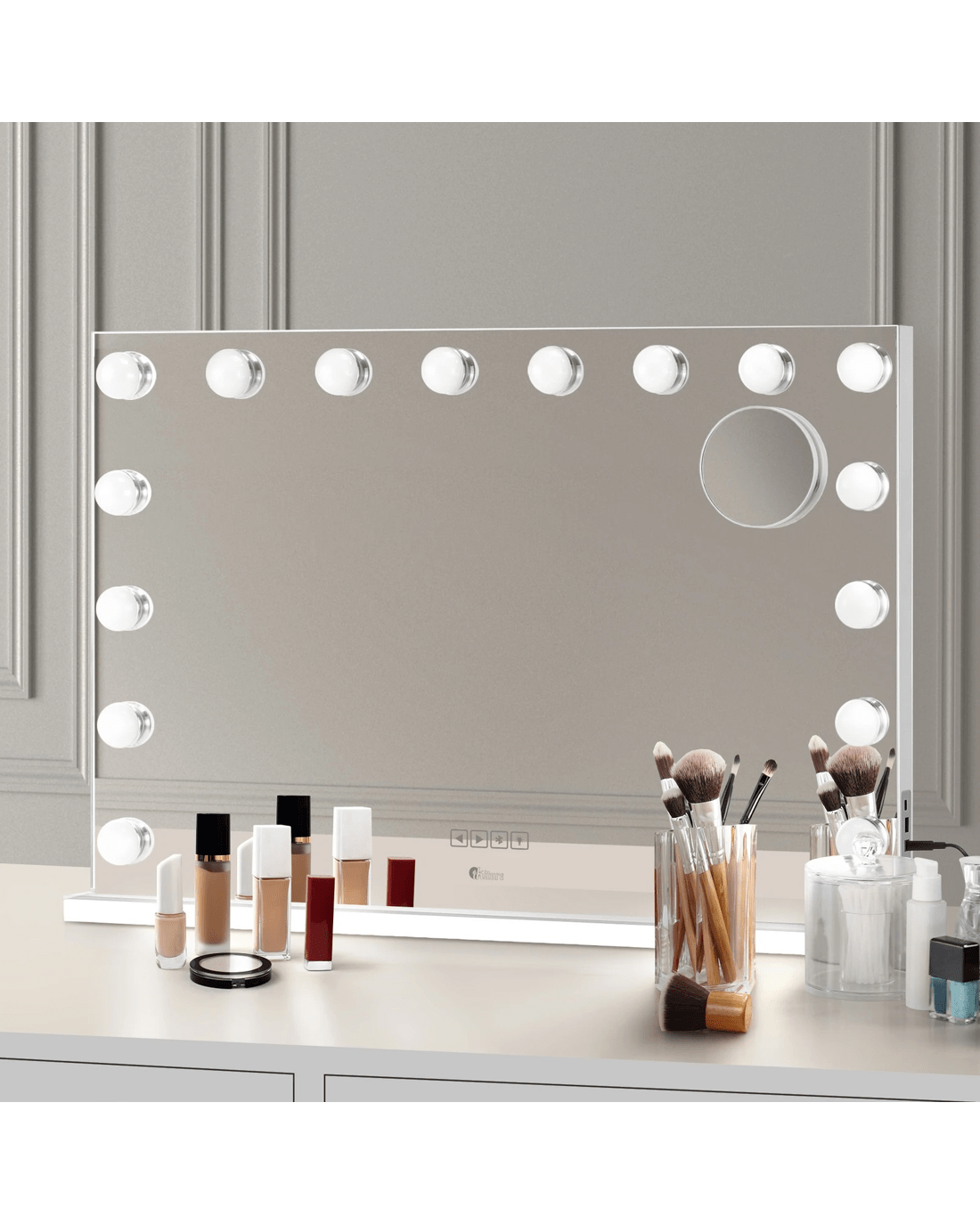 Illuminate your face like never before with the perfectly positioned, adjustable LED light bulbs surrounding the mirror. Achieve impeccable makeup application, flawless skincare routines, and confident grooming any time of the day or night. The adjustable lighting allows you to mimic various environments, from natural daylight to glamorous evening settings, ensuring your look translates seamlessly from every angle.