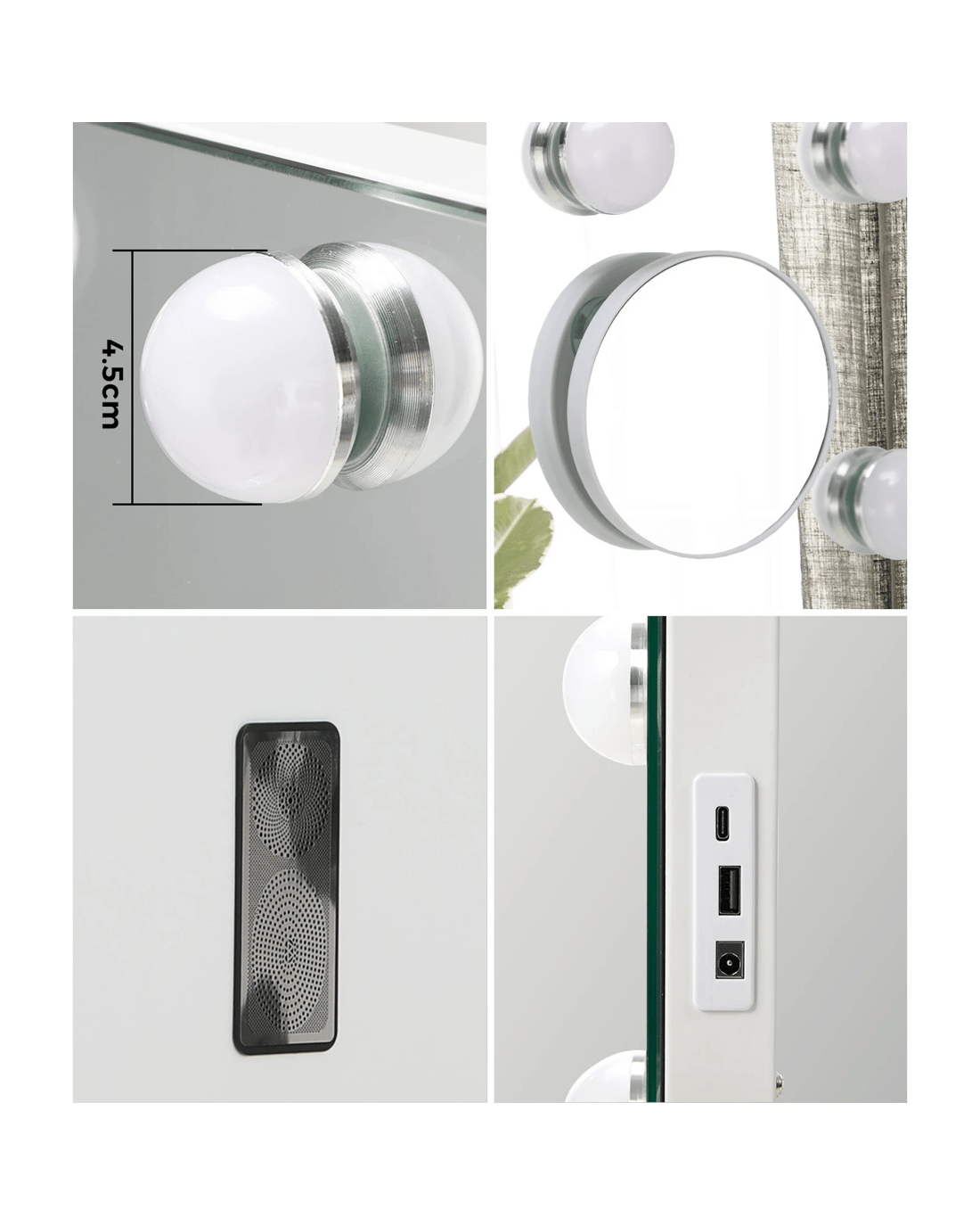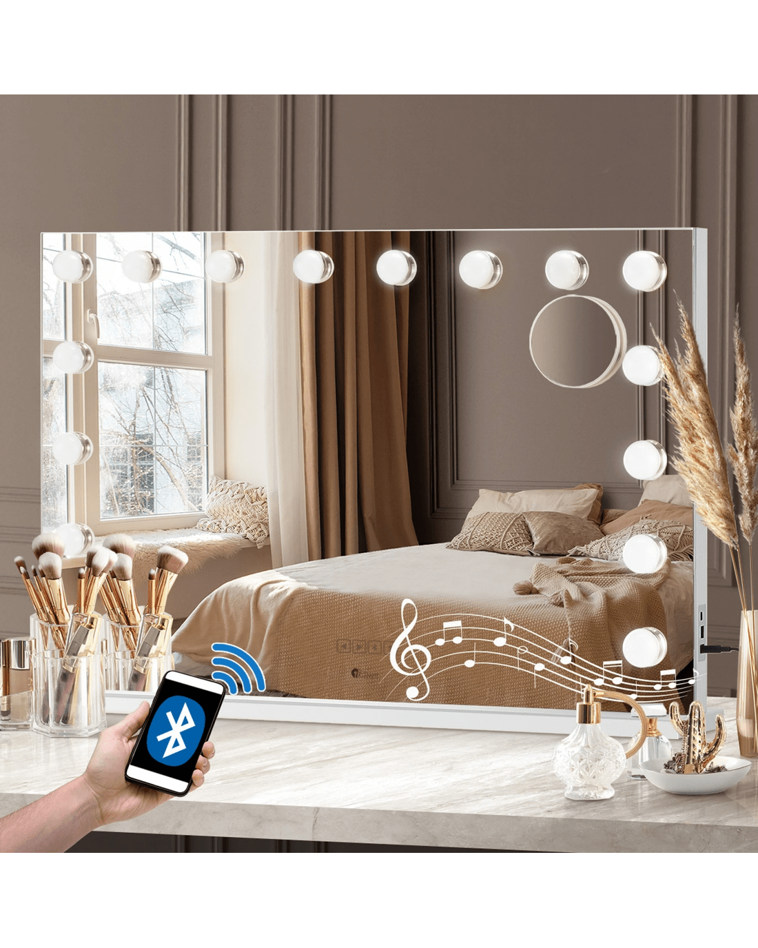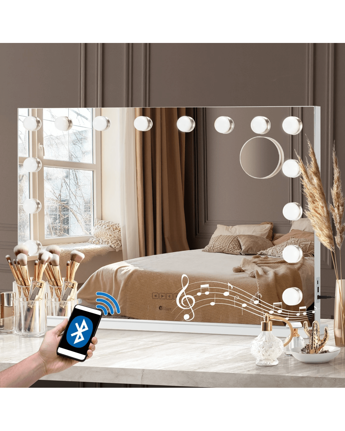 Unwind as you beautify! With a built-in Bluetooth speaker, you can create the perfect ambiance with your favorite tunes, podcasts, or guided beauty routines. Elevate your experience with the harmonious combination of sight and sound.