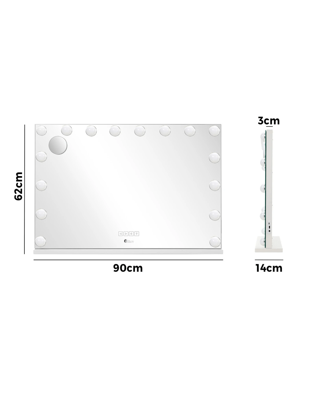 Sold by Kamprad's Oikos 1943Oikiture Bluetooth Hollywood Makeup Mirror 16 LED Light 90x62cm Vanity Mirrors - White