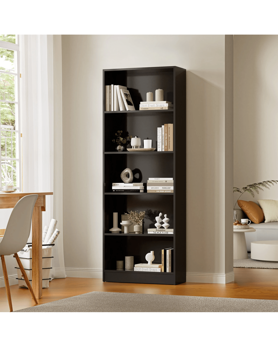 Introducing our inspired Classic 5-tier Bookshelf by Oikiture - a timeless addition to your home that seamlessly combines traditional elegance with modern functionality. Crafted with meticulous attention to detail, this bookshelf features a classic design that transcends trends, making it a lasting and sophisticated component of your home decor. With five generously spaced shelves, it provides ample storage for your book collection, decorative items, or cherished mementos, offering both practicality and visual appeal.